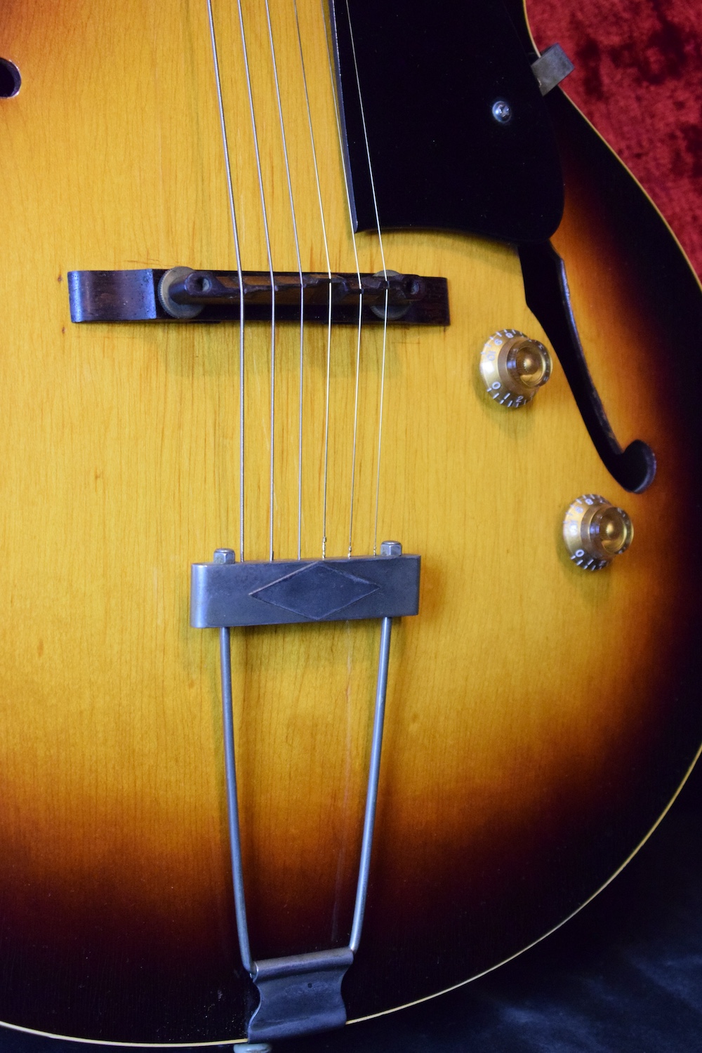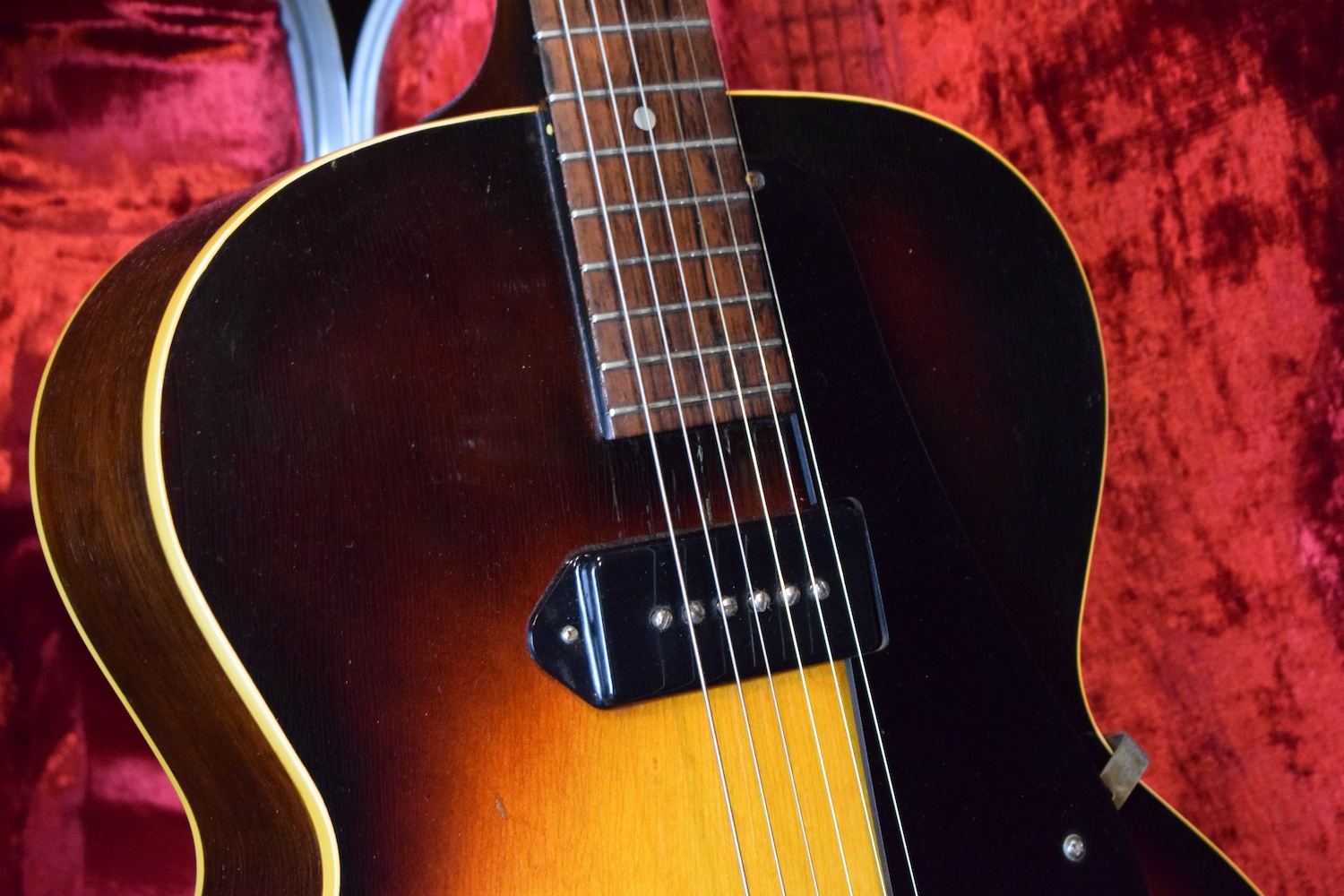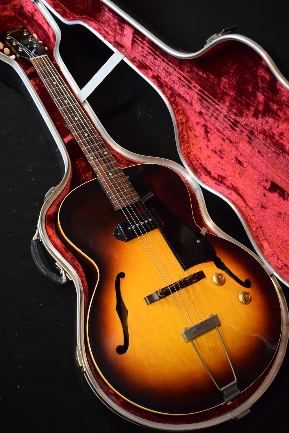The Gibson ES-125 is an iconic archtop guitar that perfectly embodies the aesthetic and sound of 1950s jazz and blues. Originally designed as an entry-level model in the ES (Electric Spanish) series, it seduces today with its authenticity and simplicity. Its laminated maple body with arched top offers a beautiful acoustic resonance, while its P-90 single-coil pickup delivers a warm, dynamic, and slightly biting tone. Its Honduran mahogany neck has a nut width of 42.8mm. All the electronics are original, as is the hardware, with the exception of the plastic buttons on the tuners. The neck is straight and very playable. This instrument is in a beautiful condition and comes with its hardshell case.