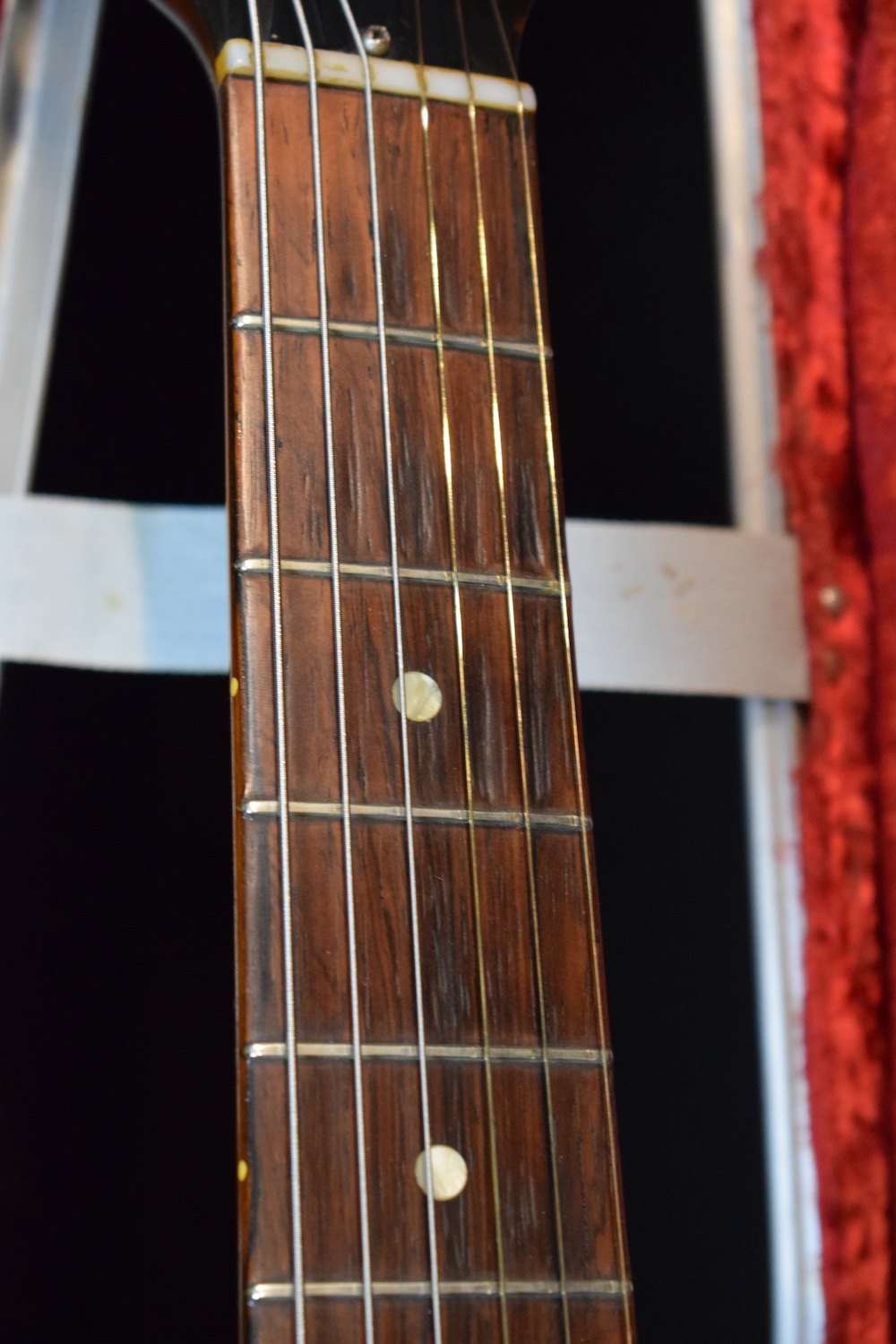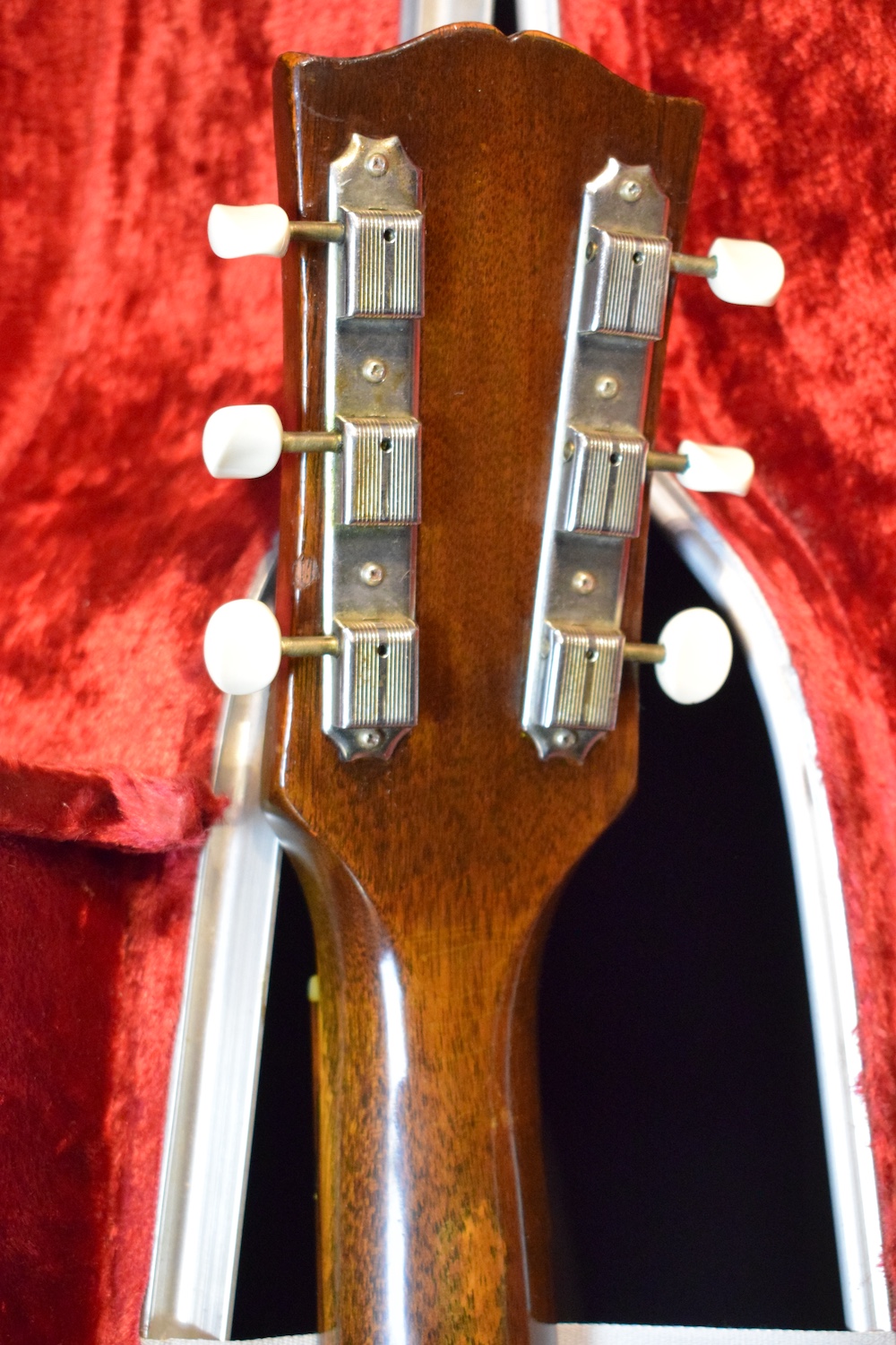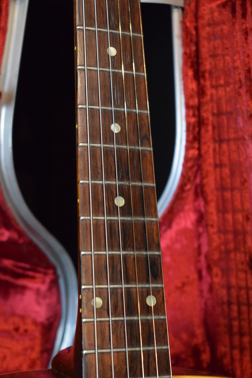 The Gibson ES-125 is an iconic archtop guitar that perfectly embodies the aesthetic and sound of 1950s jazz and blues. Originally designed as an entry-level model in the ES (Electric Spanish) series, it seduces today with its authenticity and simplicity. Its laminated maple body with arched top offers a beautiful acoustic resonance, while its P-90 single-coil pickup delivers a warm, dynamic, and slightly biting tone. Its Honduran mahogany neck has a nut width of 42.8mm. All the electronics are original, as is the hardware, with the exception of the plastic buttons on the tuners. The neck is straight and very playable. This instrument is in a beautiful condition and comes with its hardshell case.