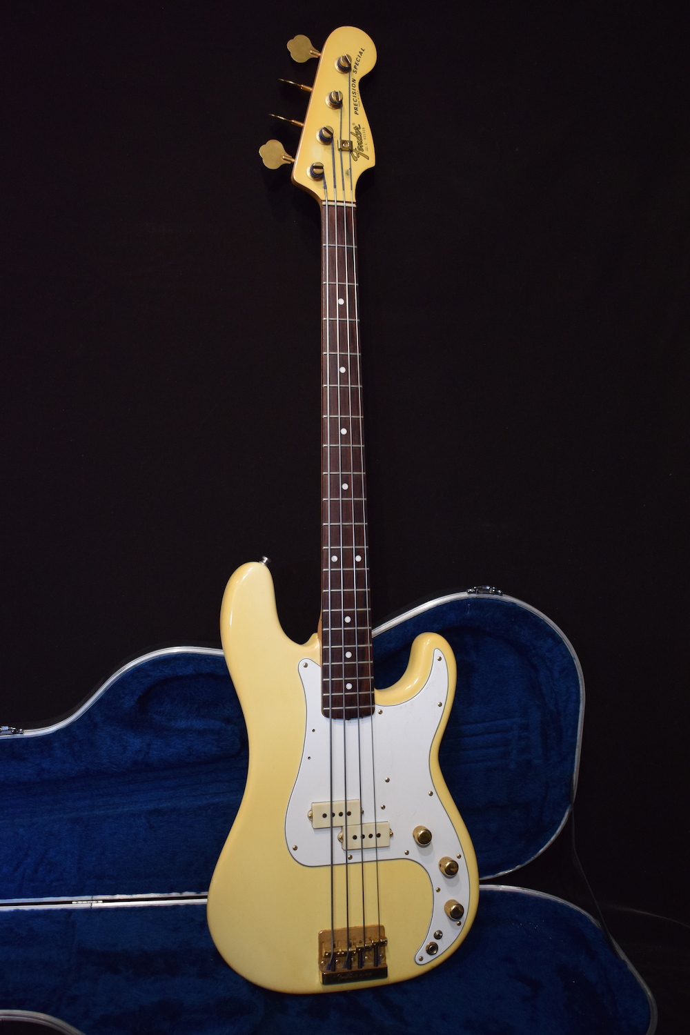 Active bass with a great sound. Ash body with a good density of 5,2kg . Rosewood fingerboard. Original olympic white finish and gold hardware. No repairs, no break, no issues, it’s all good. OHSC.