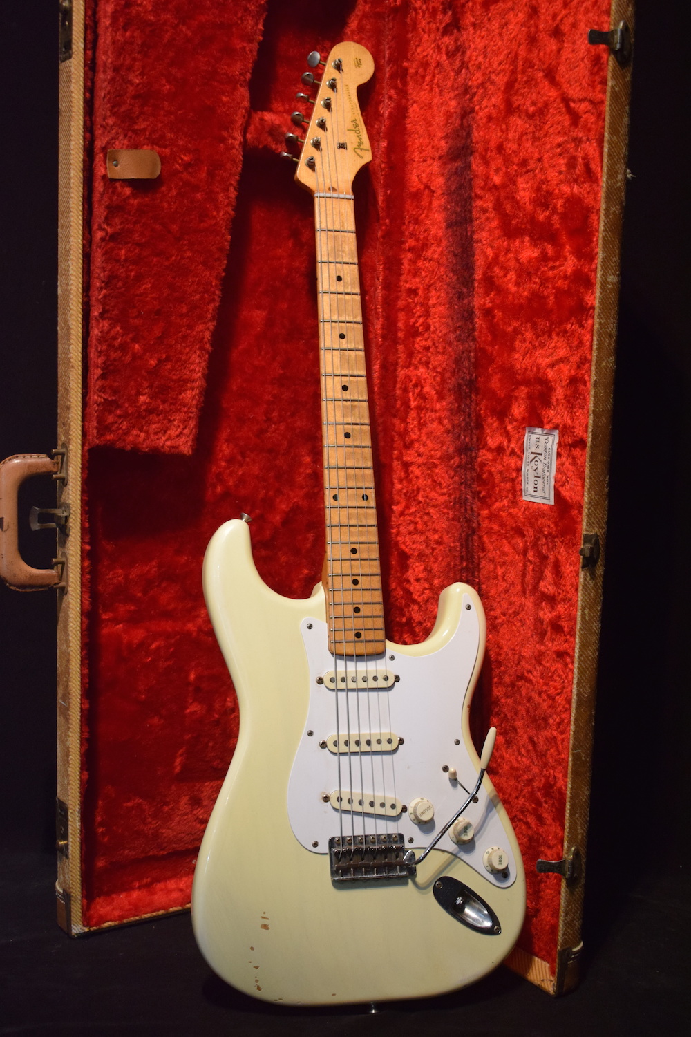 One piece ash body only. It was refinished in red and then restored to its original blond color. Soft V neck was introduced in 1956 as well. It plays like butter. All parts are original. Pro refret. It sounds great, of course. OHSC.