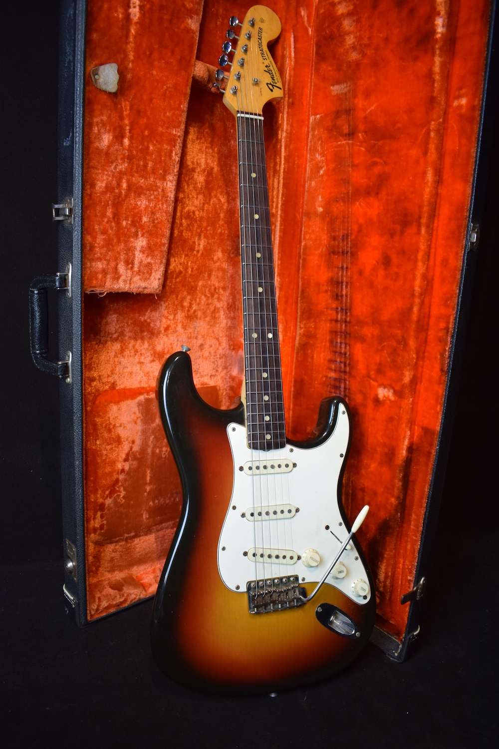 Pickups and electronics are original and fully functional. It has that immediate Hendrix vibe — clear highs without harshness, full mids, and a warm, responsive low end. The guitar is lively and resonant, equally at home delivering funky or rocky rhythm parts as it is soaring through Hendrix-style leads. Dynamic, touch-sensitive, and full of life, with that natural compression only well-aged vintage Strats have.