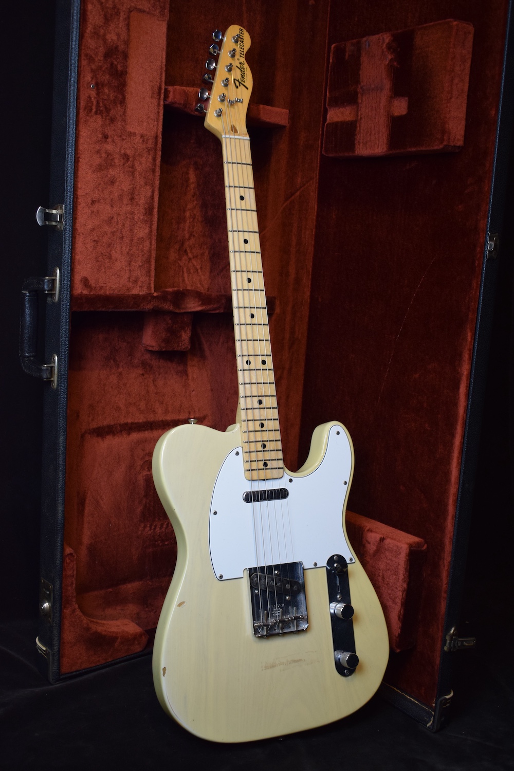 Like the Telecasters of the second half of the 50s, this one is made of ash with a translucent blond paint and completed by a white pickguard. While ash is often a little denser than alder, this one is not heavy since it weighs exactly 4kg. It is a very well preserved instrument with all its original parts. The original paint is well preserved. It sounds very good, it is easy to play, the frets are of a good level, the action is low and the instrument was recently setup. It is a good one. It comes with its original hardshell case.