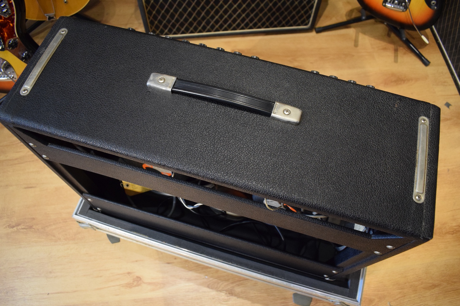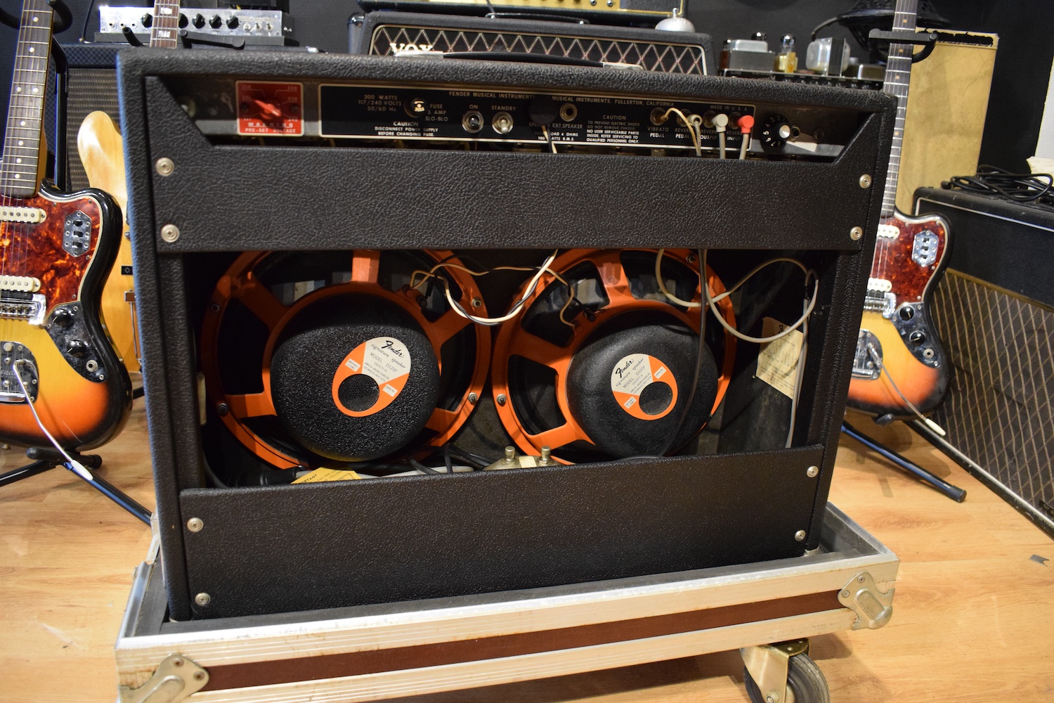 Fender Twin Reverb Silverface 1979, Master Volume Ultra-Linear version, built in Fullerton, California. This is an 85-watt amplifier with a 2×12″ configuration, fitted with its original Fender Special Design speakers (orange frame). Legendary clean tone with huge headroom, classic Fender reverb and vibrato, ideal as a pedal platform or for jazz, funk, country, and studio work. European export version, clean and well-maintained amplifier.