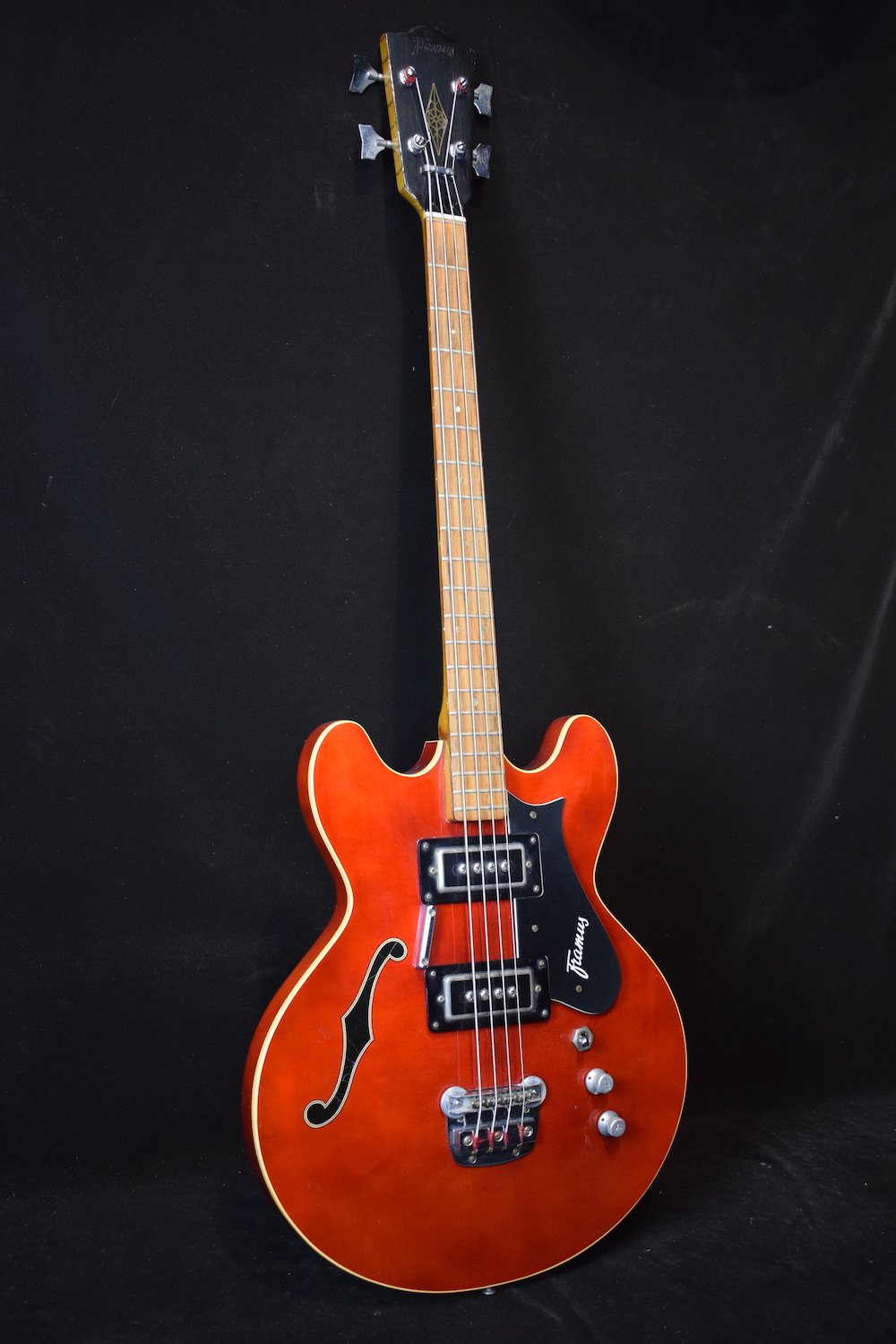 This is a German bass made in the late 60s with a laminated neck (indestructible!) and a maple body. The fingerboard is rosewood. The neck is straight with low action, and the instrument is very playable, it is a 30-inch short scale. No break or repairs. In a soft case.