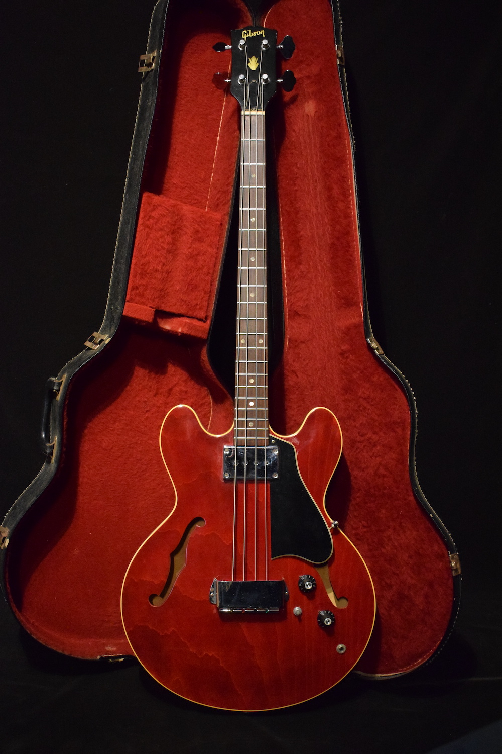Beautiful instrument in very good condition. This EB-2 cherry has played. It has wear, mainly on the back where you can see some buckle rash. The mute system has been removed, the vast majority of players preferring to simply use their hands, but it’s kept in the case. A very nice sound, typical short scale, a little rounder and deeper than on models with a similar scale. A relatively unknown instrument that will surely please all short scales lovers. In original case.