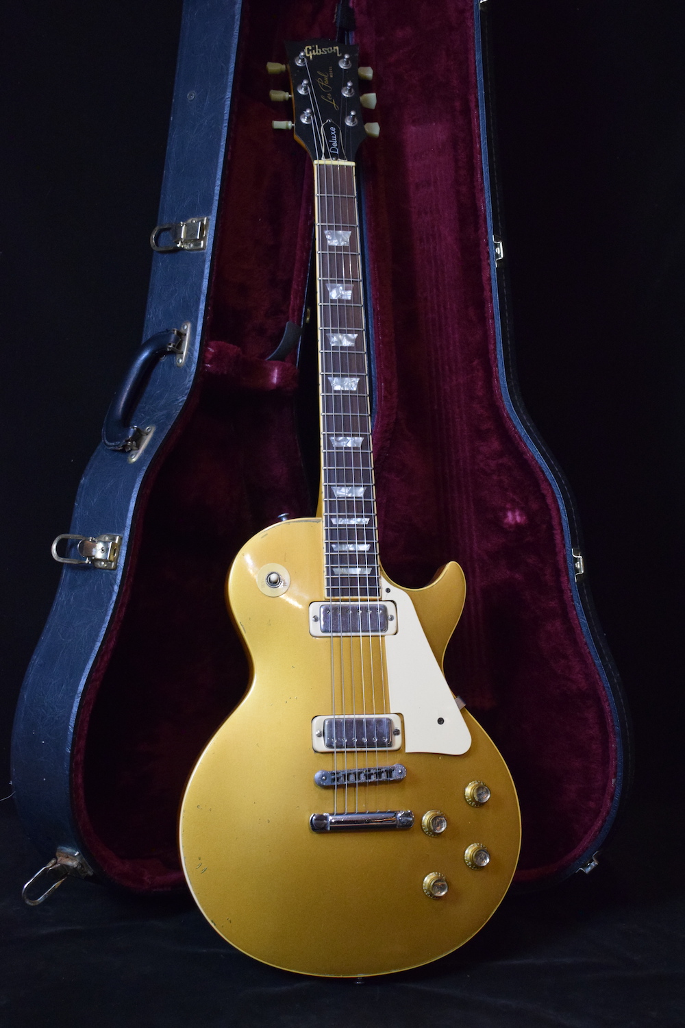 Here is a beautiful Goldtop from the mid 70’s in excellent condition. Completely original. No repairs, no modifications. The neck is a three-ply maple and the body is of course a “pancake body”. The guitar plays great. The action is low and the intonation very precise. All original electronics with original pickups. Comes in a Gibson Historic hard case.