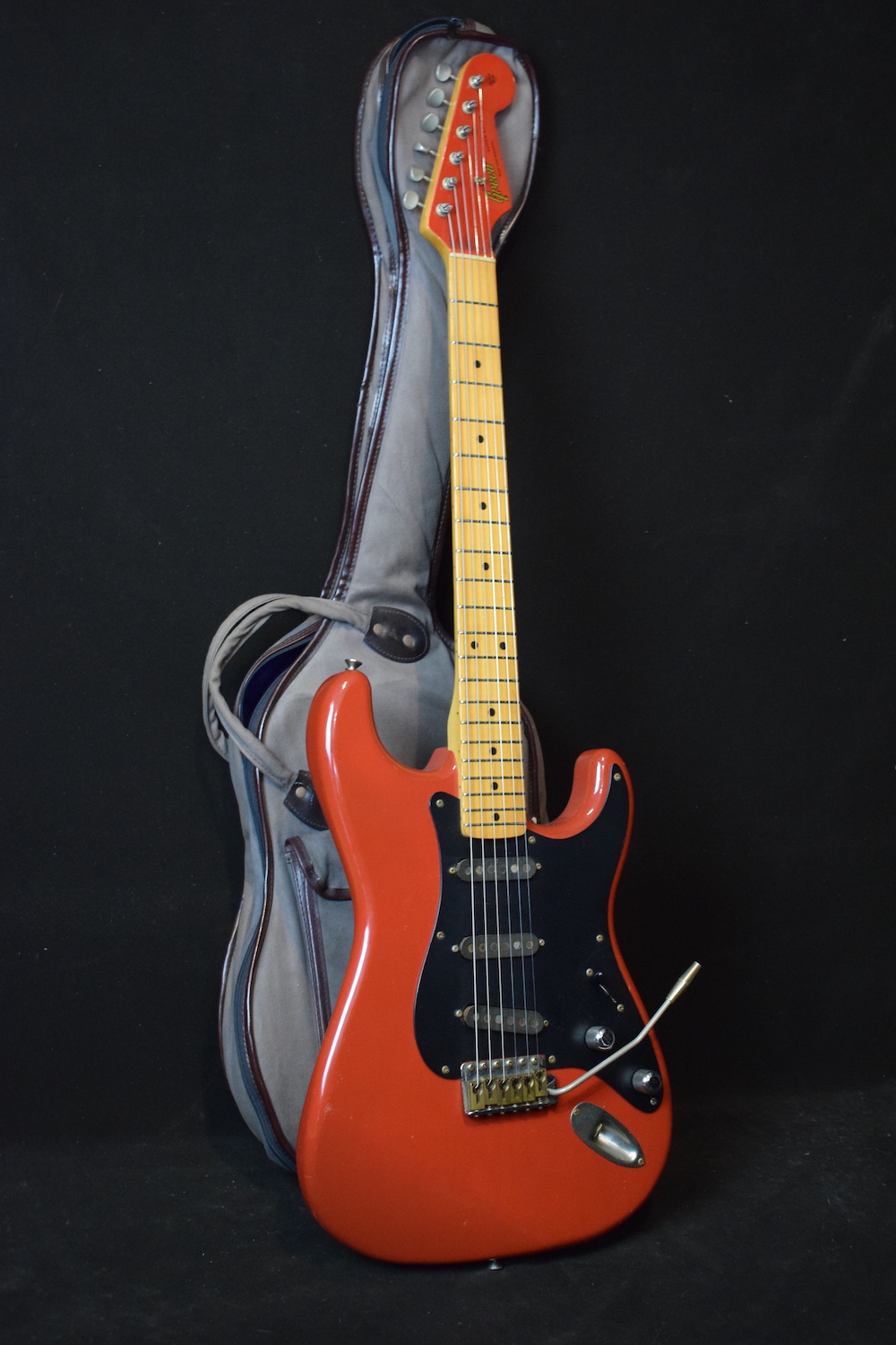 Beautiful Japanese reissue Stratocaster in an unusual original red finish. This is a high-quality instrument at a very reasonable price. It’s setup and ready to play. Comes with its original soft case.