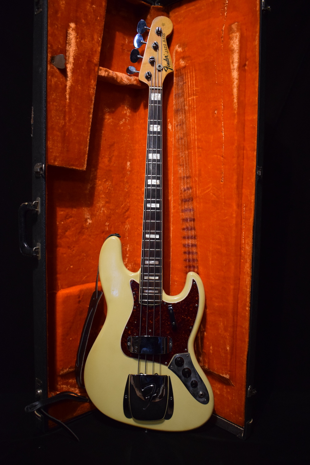 Completely original instrument which has only had one owner in the Nantes area (and we even have some papers and photos) The original Olympic White finish has turned a bit yellow as usual. All the solders are intact and the electronics have never undergone the slightest intervention. The 2 original pickups are gray bottom and have not been rewound. The solders of the insulating metal plates inside have not been touched and also attest to the originality of the finish. Uncommon thing the metal parts seem to have reacted with the finish in multiple places, unless it is related to excessive heat who knows, the most visible is at the level of the serial number plate and around the covers. Strange but which does not call into question the originality of the varnish since the electronics have never been taken out. Similarly, the neck pocket is still the same way it left the factory. The instrument is joy to play and mounted with flat wound strings. Always has been. It is a well balanced and very complete instrument. Every bassist’s dream. Comes with the correct Fender case.