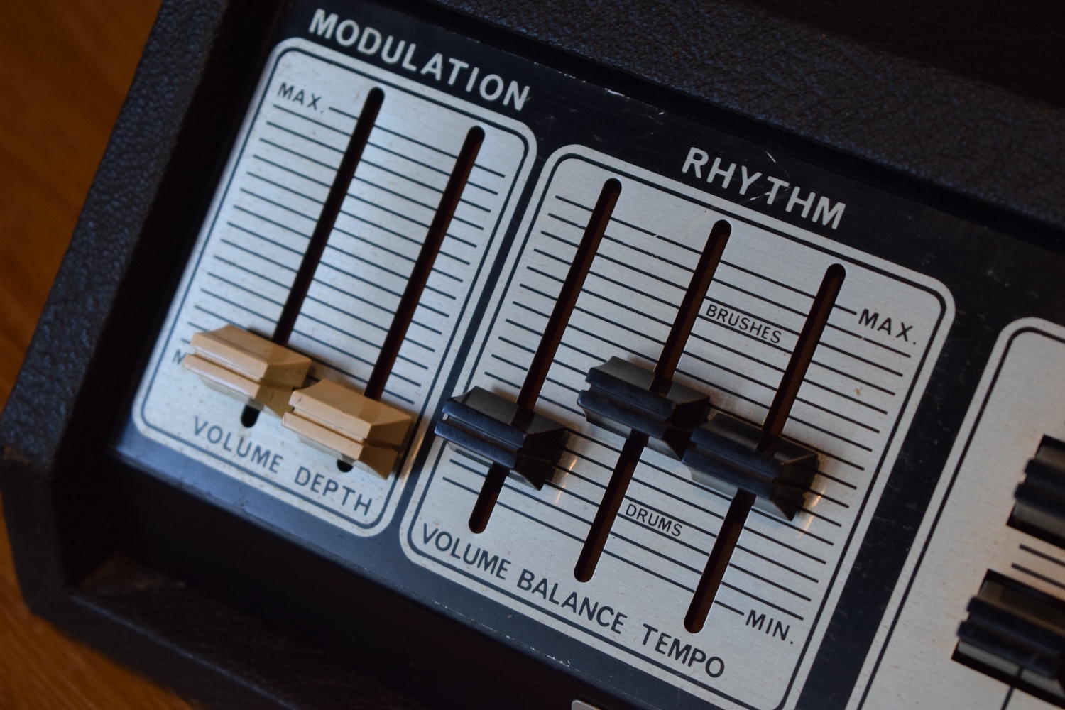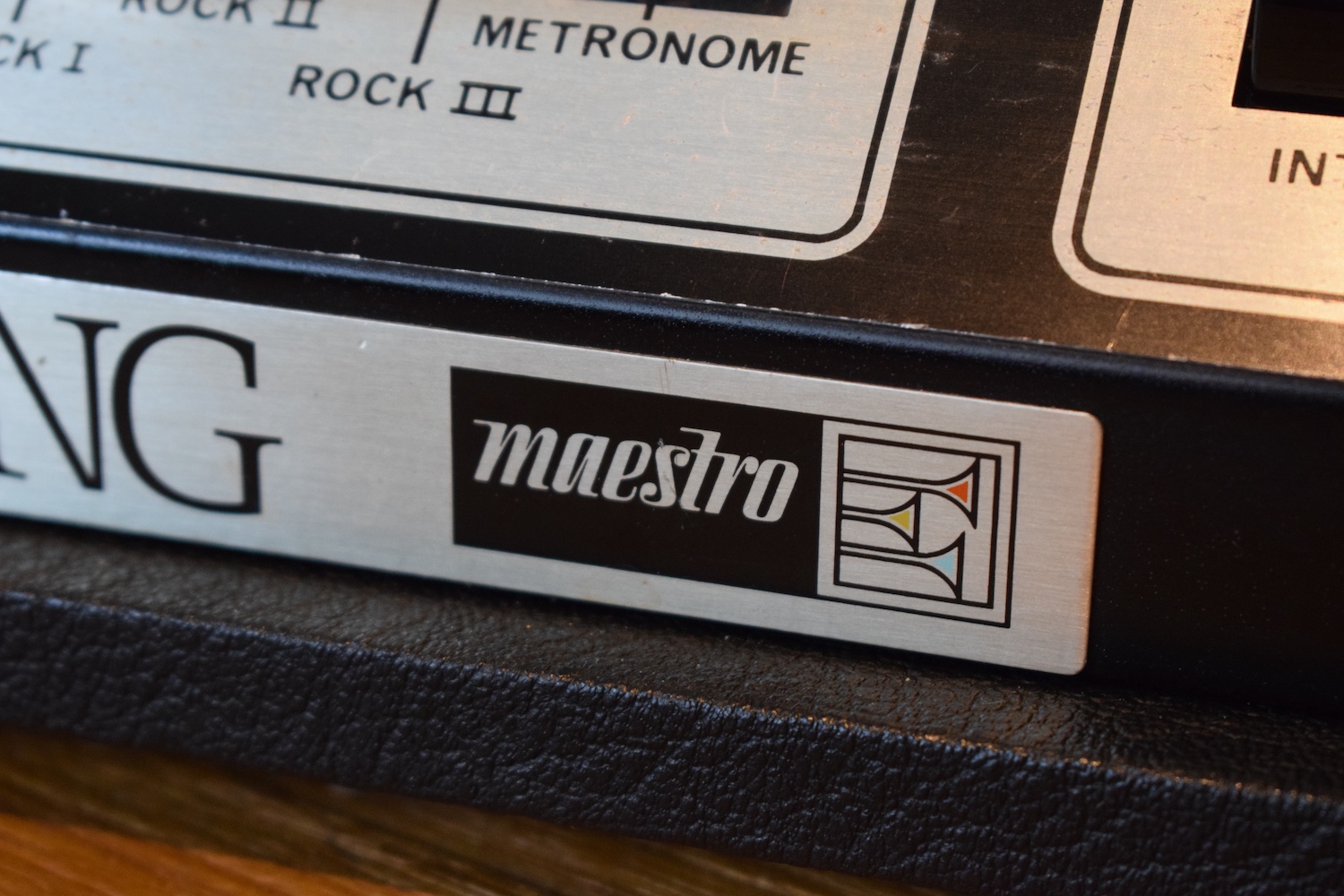 The Maestro Rhythm King MRK-4 is an analog drum machine from the 1970s. It offers a series of pre-programmed patterns—the usual rock, bossa nova, cha-cha, swing, rumba, etc.—which can be layered to create unique combinations. Without step programming, it offers an almost organic simplicity: a tempo knob, a volume control, a rhythm selector, and a start/stop button. Its charm comes from this simplicity and its analog character, which still makes it a benchmark in funk, soul, lo-fi, and modern productions seeking a warm groove.