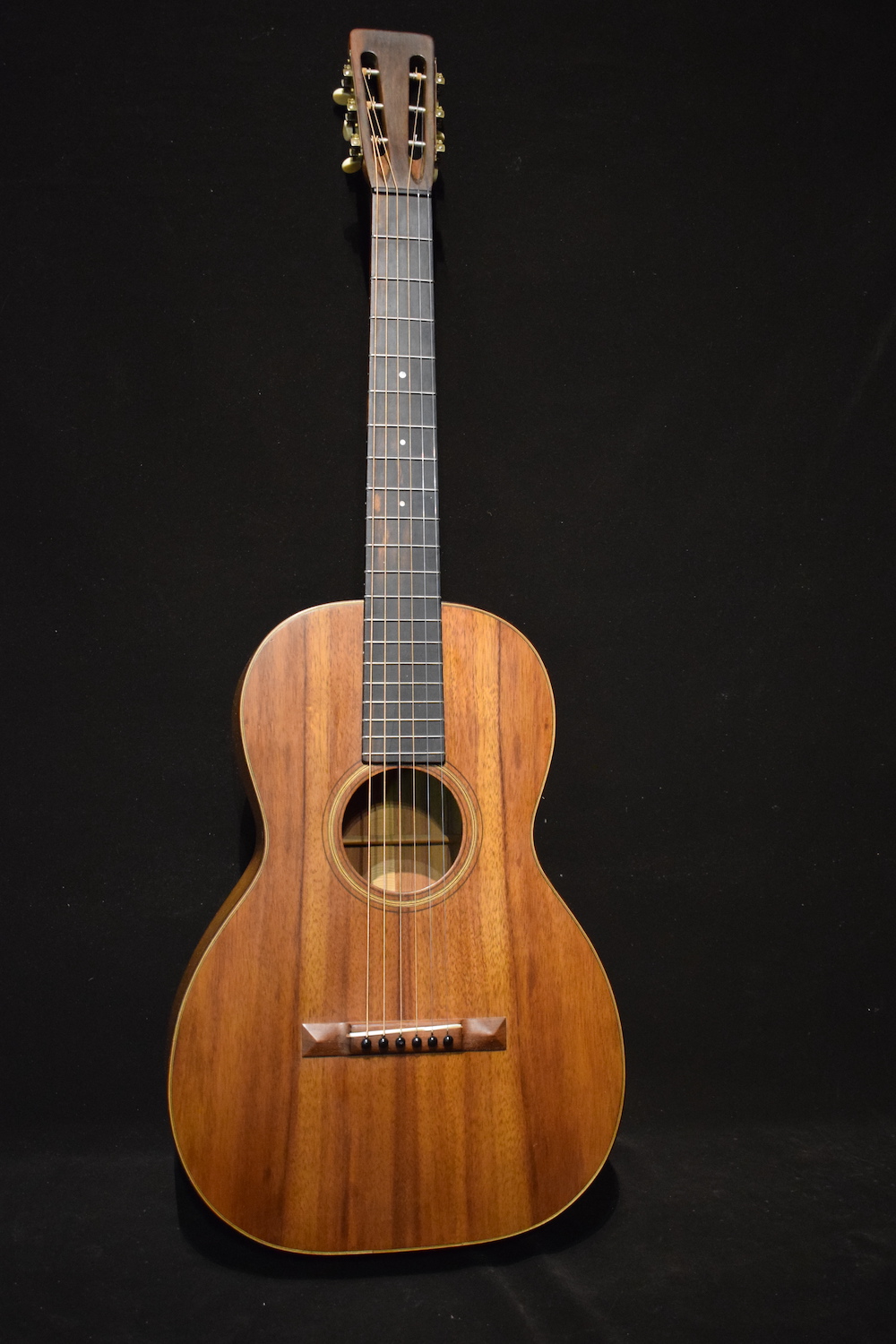 Here is a rare 0 size model. This one is built with a beautiful and light weight Koa set. It’s a hundred years old guitar in remarkable condition. No crack on top back and sides. It does have a small split at the end of the fingerboard but I don’t think there is a need to intervene. It’s minor and has been like this for years according to one of the previous owner. It has a new saddle. The nut, the frets and the tuners are original. New bridge pins of course. The neck is straight and perfectly set. Action is 3mm at the E and 2,2mm on the e at the 12th fret. The neck profile is quite flat and thin with a soft V. Nut width 47mm. Feels great. Sounds great. Comes with a modern hard case.