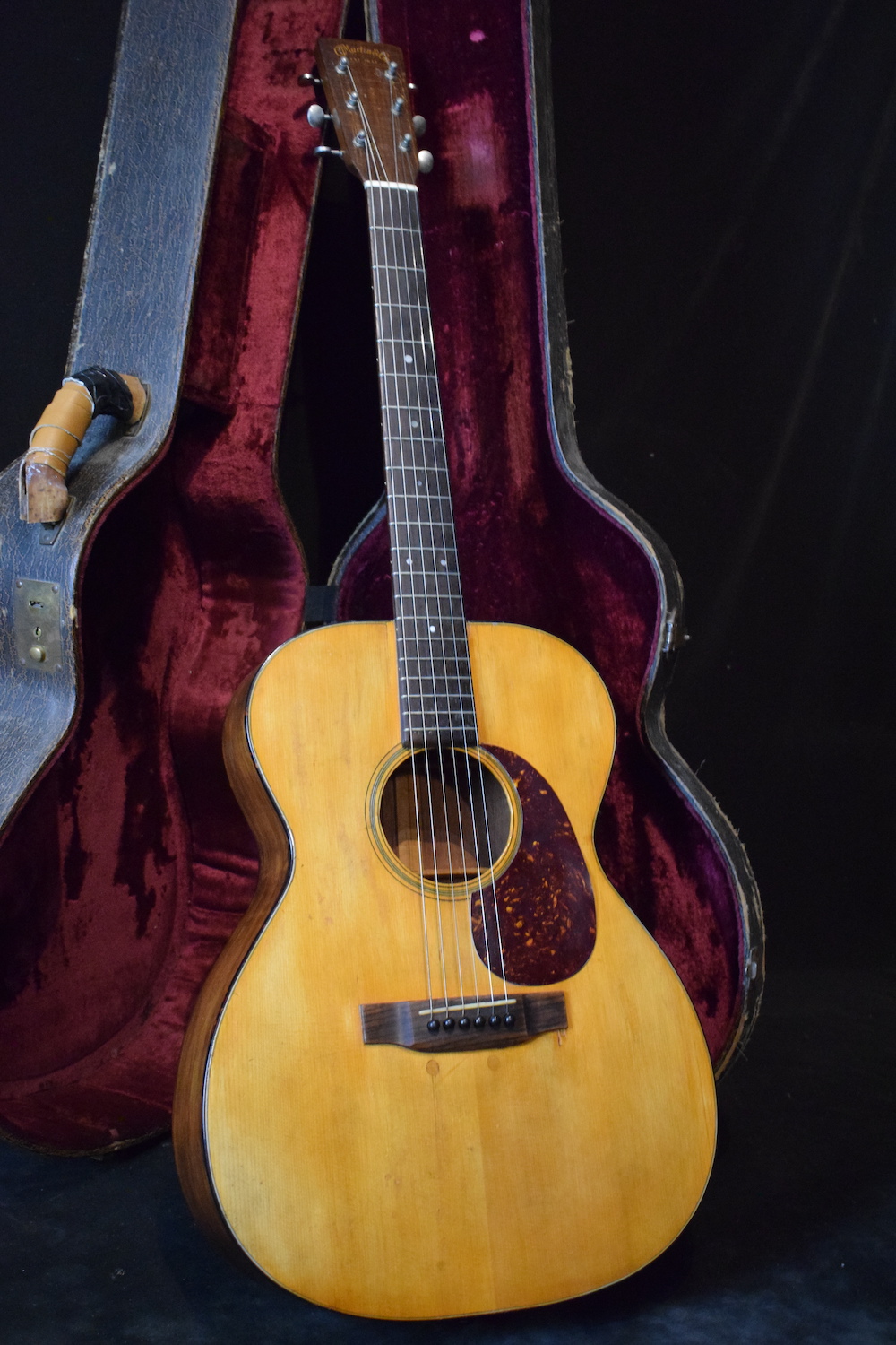 This 1942 Martin 000-18 is a fine example of a vintage instrument whose charm remains intact despite the marks of time. Built during an emblematic period in Martin’s history, it features an Adirondack top with scalloped bracing and a rear-shifetd X, two characteristics that you’ll only find from 1938 to 1942. So, of course, this is a well played instrument, and it has been maintained in optimal playing condition over the decades. But remember, when it left the Martin workshop in Nazareth, World War II wasn’t over. That was over 80 years ago. At the time, the Martin factory employed only about twenty workers in production… This guitar has had its bridge and backplate replaced, as well as a neck reset, and the neck angle is still good; it’s even very playable. Of course it has undergone a few repairs, including two plugs behind the bridge, and a general overspray. The comfortable neck has been refretted and remains easy to play. The tuners work well and hold tune well. It has rich, balanced sound, typical of prewar Martins: warm, precise, with excellent projection. A guitar full of character, intended for a musician who seeks soul more than cosmetic perfection.