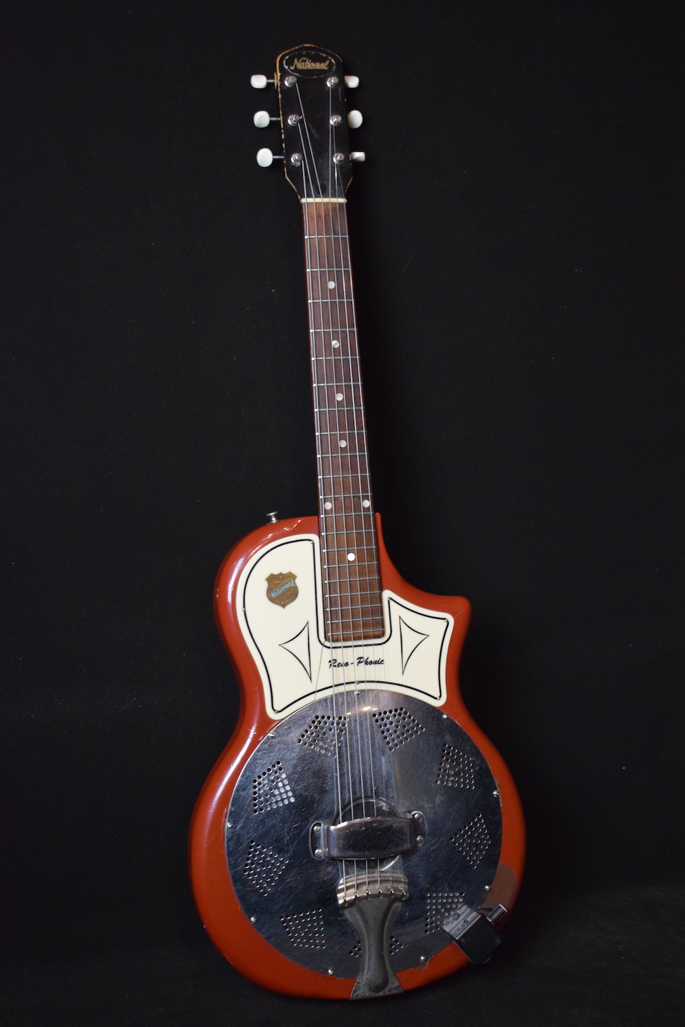 An instrument that I brought back 11 years ago from the United States. At the time, I forgot it on the bus that took me from the airport to Montparnasse station. So thin that we couldn’t see it in the luggage compartment…Luckily it was the terminus and the driver was on break… So I sold this instrument at the time to a professional guitarist friend who went to Mike Lewis to push the cone back and restore it to its original shape, he also equipped it with a Schaller. So it was used on stage fior years and is doing well. It’s a small size, very handy with such a charming sound. Very tight, a bit radiophonic. This is one of the rare models with a “solid” and non-pearloid finish. Good condition, no repairs. A few dings or blemishes here and there but nothing too bad. In soft case