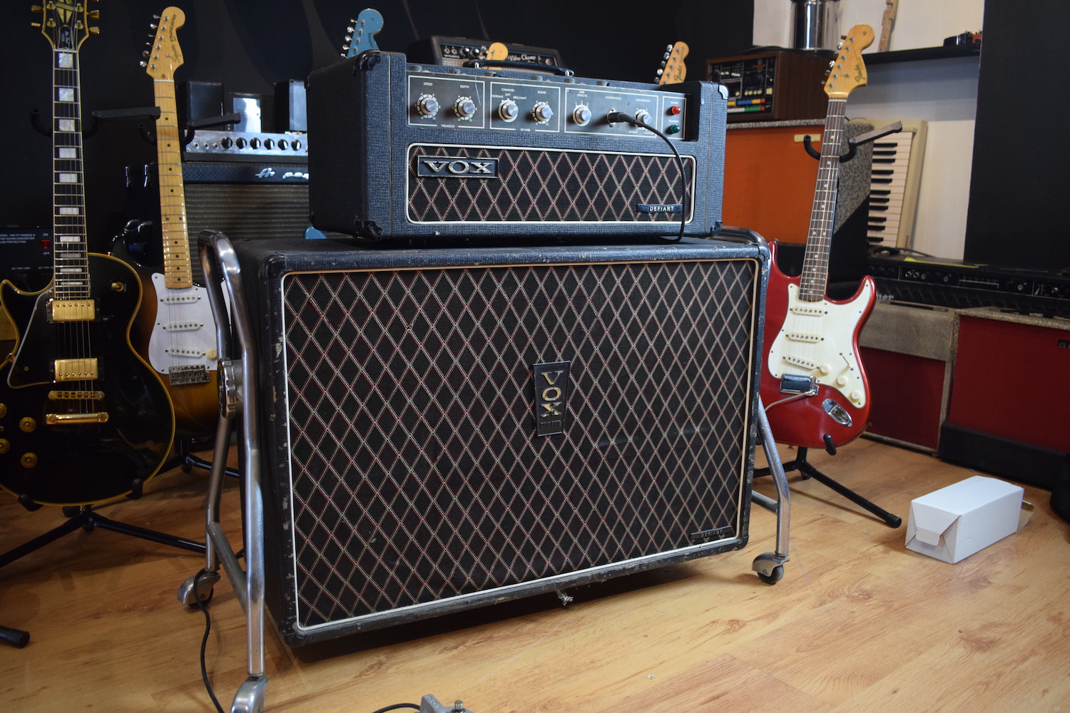 Made famous by the Beatles, the Defiant is one of the first Germanium transistor amps. This one is complete with its transport chassis and the original Vox pedal. It works very well and has just been serviced.