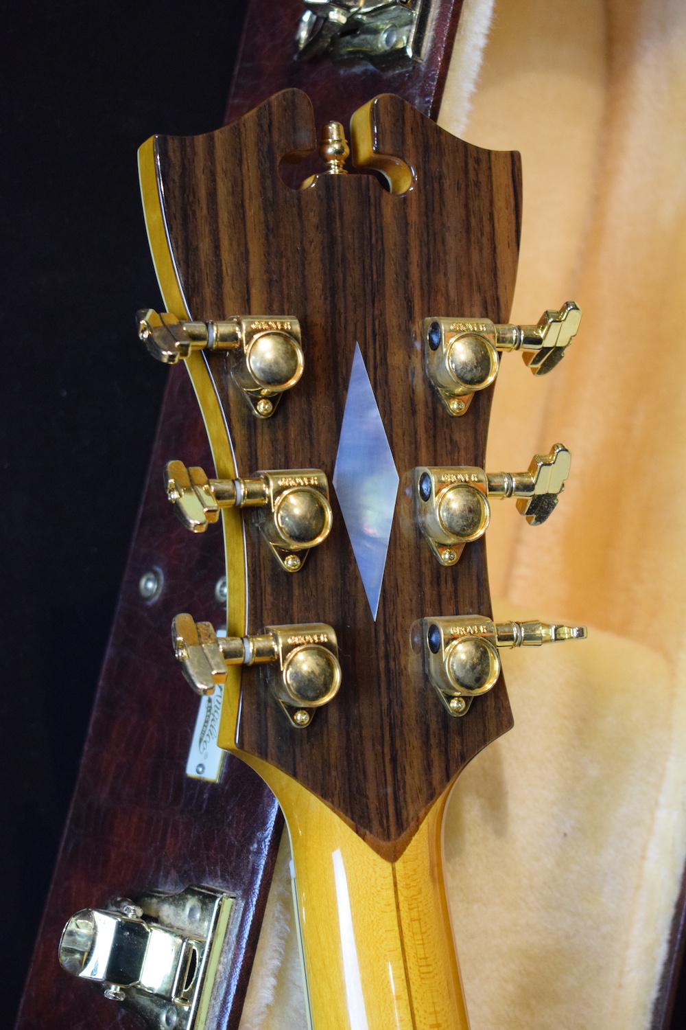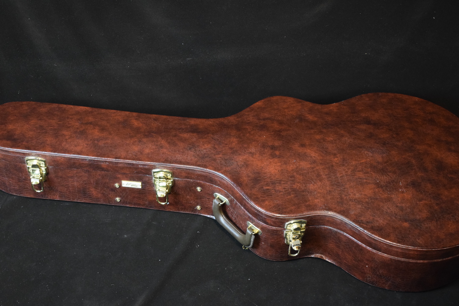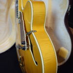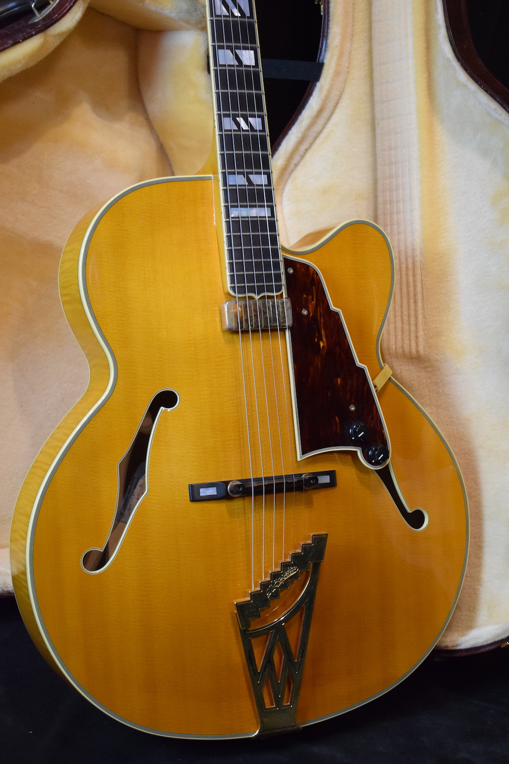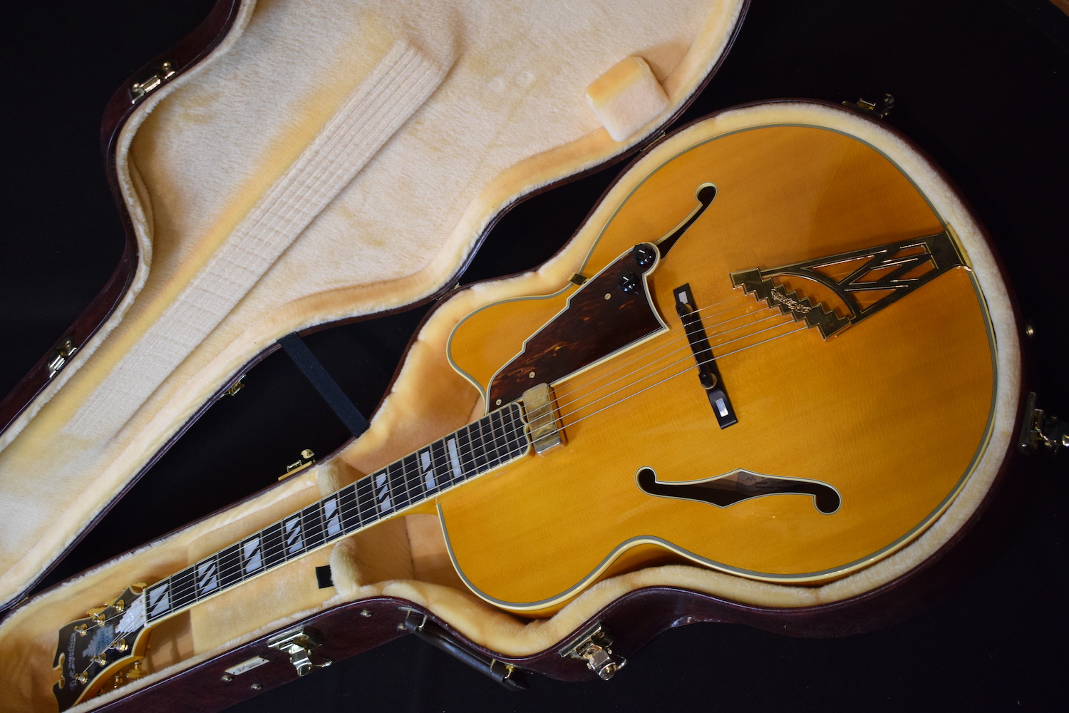 Cet instrument fait partie de la brève série fabriquée par Vestax , au Japon au début des années 2000, et qui s’est déjà taillée une belle réputation auprès des amoureux du jazz, des archtops et de la belle lutherie. Ce modèle est en excellent état, sans réparation. La guitare est monté avec un micro de type Johnny Smith récent et fourni avec le micro original qui est dans l’étui. Très facile à remonter, juste un point de soudure si besoin. La guitare est parfaitement jouable et sonne déjà très bien à vide. Elle est fournie avec son certificat d’authenticité et son étui d’origine lui aussi en très bel état.