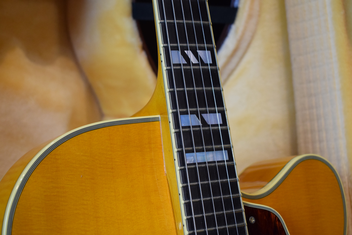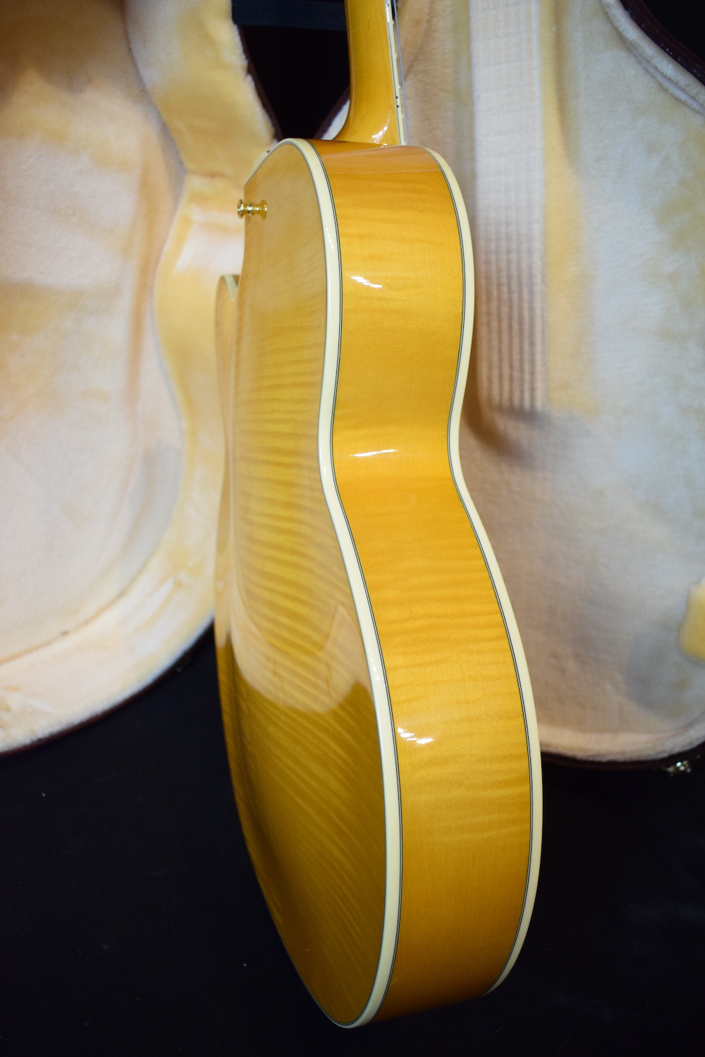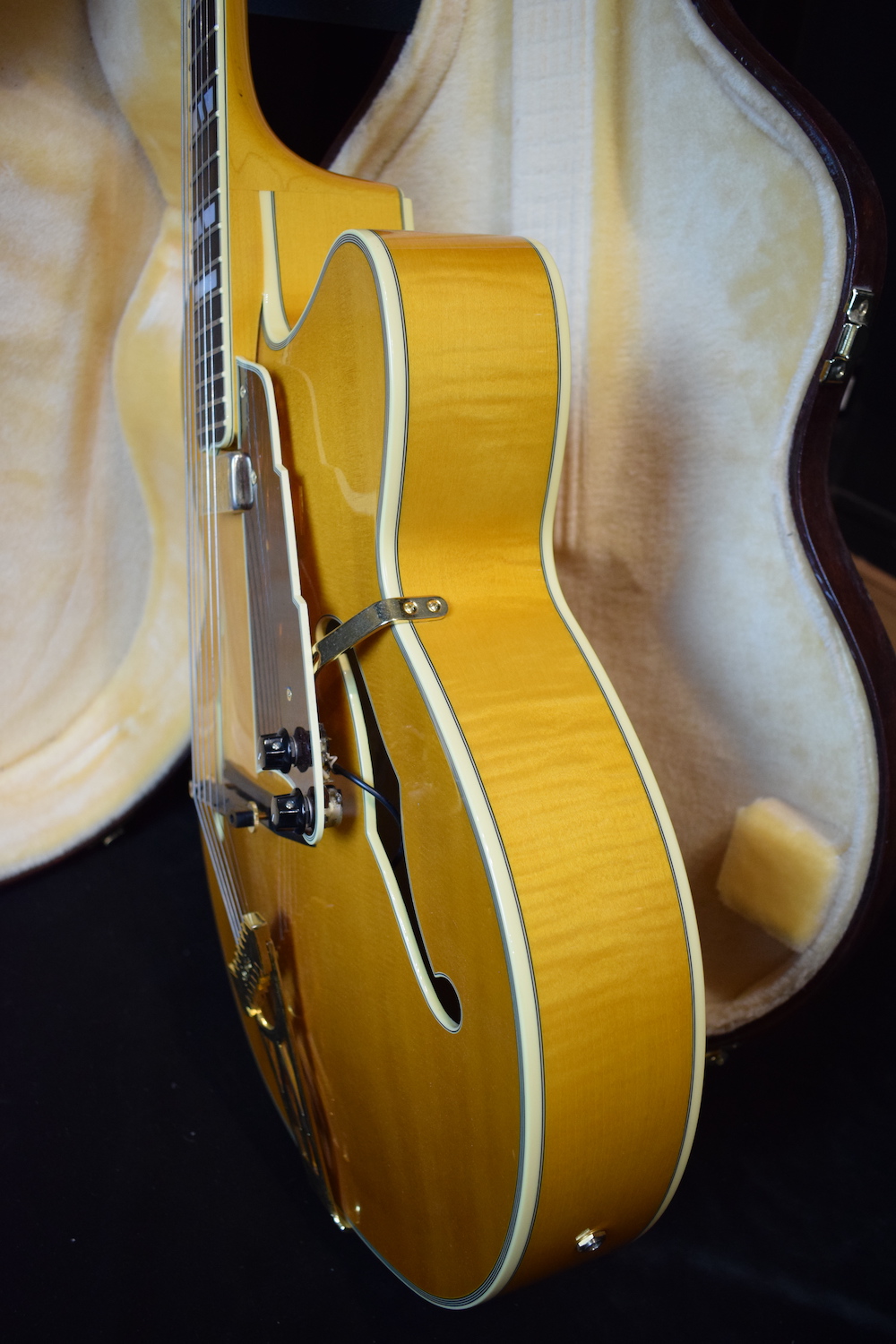 Cet instrument fait partie de la brève série fabriquée par Vestax , au Japon au début des années 2000, et qui s’est déjà taillée une belle réputation auprès des amoureux du jazz, des archtops et de la belle lutherie. Ce modèle est en excellent état, sans réparation. La guitare est monté avec un micro de type Johnny Smith récent et fourni avec le micro original qui est dans l’étui. Très facile à remonter, juste un point de soudure si besoin. La guitare est parfaitement jouable et sonne déjà très bien à vide. Elle est fournie avec son certificat d’authenticité et son étui d’origine lui aussi en très bel état.