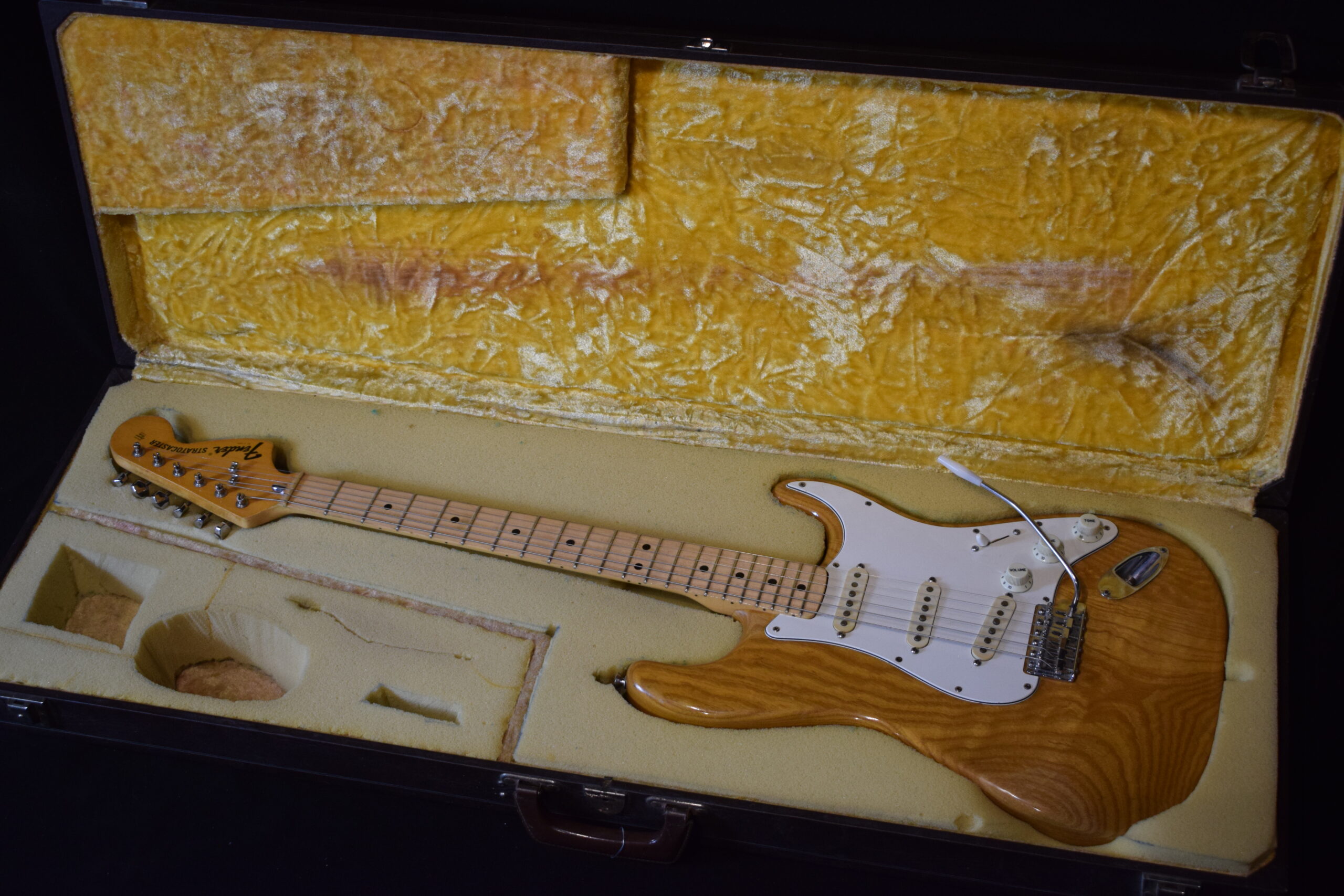 Cette Strat est un bon exemple de ce que devrait être une bonne player. Un bon instrument, en bon état et à un prix correct. Il s’agit d’un modèle naturel de 1974 dont les micros ont été remplacés par des micros custom shop Abigail Ybarra qui, il faut le dire, sonnent vraiment bien. Elle pèse 4 kg, ce qui est normal pour un modèle des années 70. Aucune casse ni réparation. Le manche porte un code datant de 1973, ce qui est tout à fait normal pour un instrument de 1974. Les frettes ont encore une belle durée de vie, elle est prête à jouer. Dans un étui européen d’époque, en état d’usage.