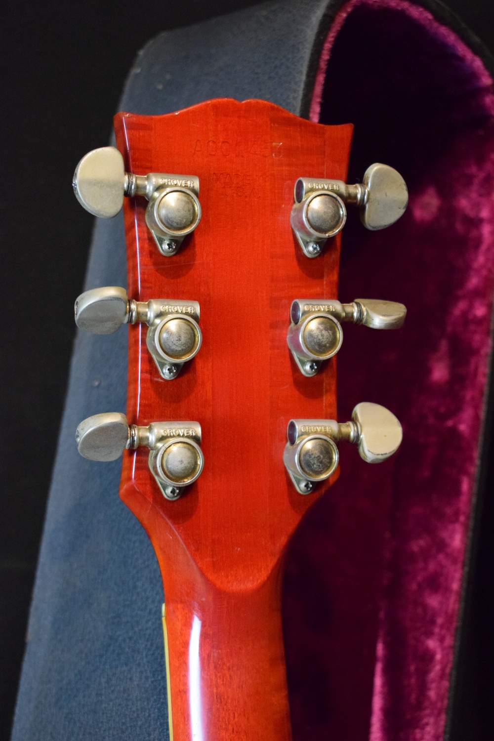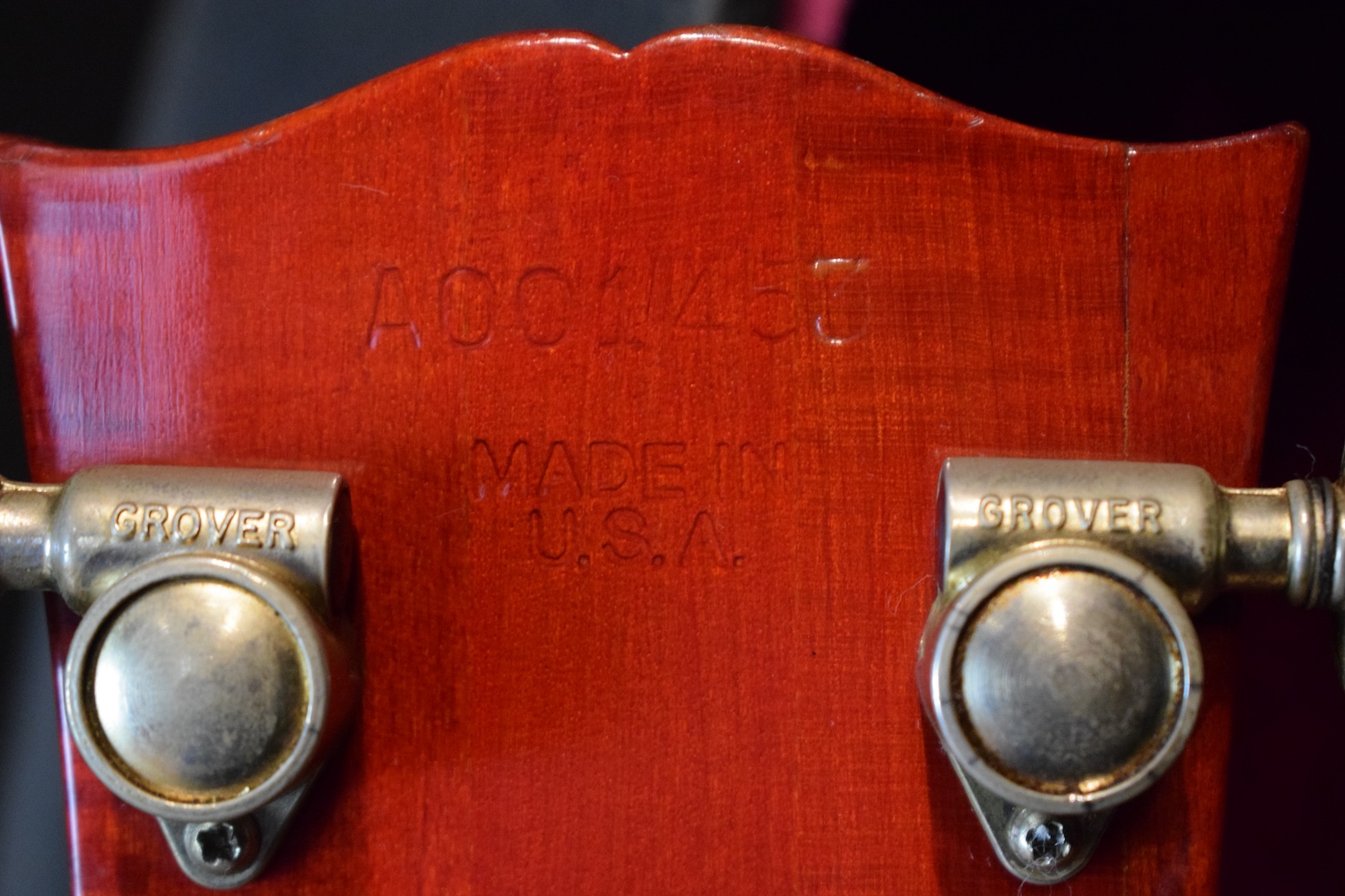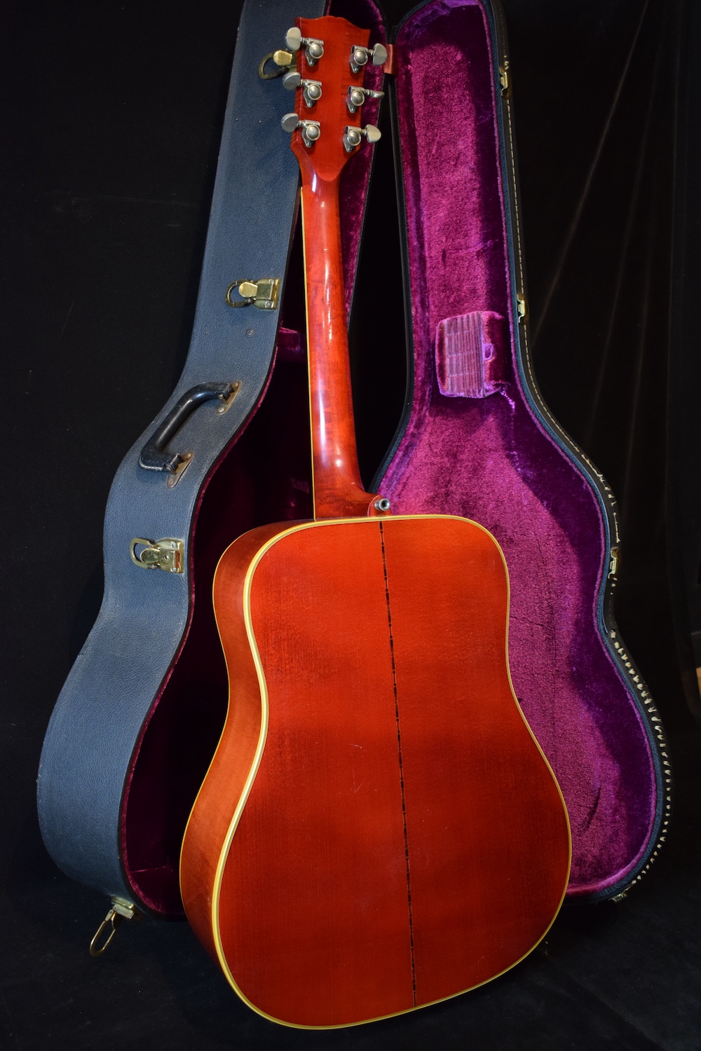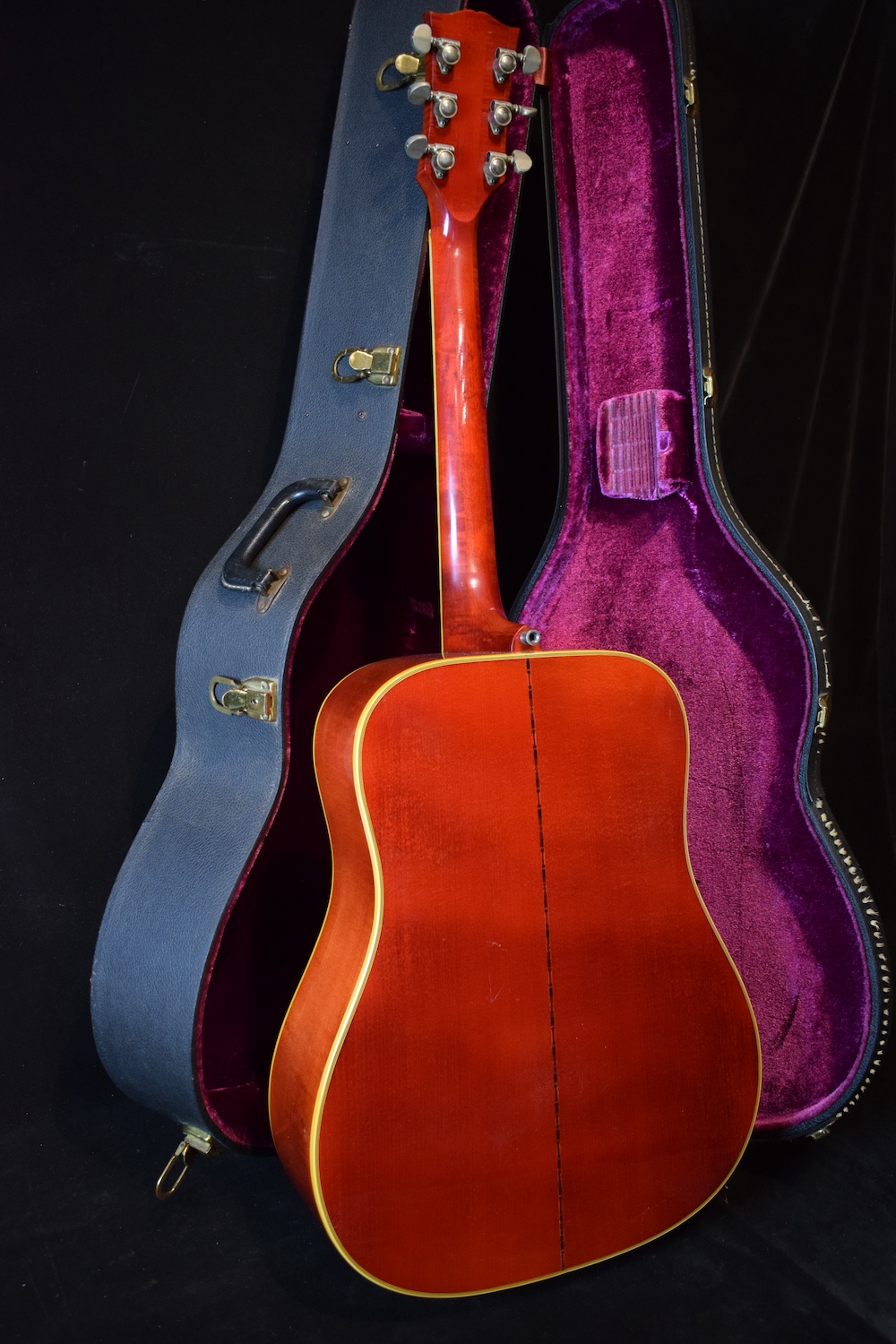Tout en haut de la gamme Gibson, la Dove est une guitare qui a largement contribué à la légende de la marque. Endossée par Elvis, Duane Allman, ou encore Tom Petty, la Dove est un classique incontournable et pourtant en trouver une vintage est loin d’être aisé. Ce modèle en particulier était déjà passé par ici il y a une dizaine d’année. Elle n’a pas bougé et avait juste besoin d’un petit nettoyage et d’un réglage ce qui est bien normal après tout ce temps. Son état est très bon. Pas de fentes ou de réparations. On notera que l’azote qui s’échappe du pickguard lui a donné cet aspect quelque peu blanchi, je suis sûr que vous êtes familier avec ce phénomène si vous lisez régulièrement ces pages. L’angle du manche est bon, les frettes d’un bon niveau et la guitare sonne très bien évidemment. Un son folk très large et assez brillant, bien ample avec de belles harmoniques. Tout ce que l’on est endroit d’attendre d’un des symboles de la lutherie américaine. Icône d’une génération qui comme tant d’autres rêvait de la paix.