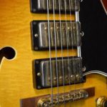 Cette Gibson ES-5 Switchmaster de 1960, dans sa finition sunburst d’origine resplendissante est un exemplaire absolument remarquable. Elle est entièrement d’origine, y compris son trio de micros PAF. La guitare présente de magnifiques ondes sur la table et un accastillage métallique qui s’est gracieusement patiné au fil des ans. Le manche est d’une aisance déconcertante et couplée à un ampli de qualité cette Switchmaster est divine. Le son est incroyable, sur le Selmer Twin 30 de la boutique c’est comme écouter un disque en haute fidélité. Vraiment ce qu’on peut faire de mieux. Il s’agit sans conteste de l’un des instruments qui m’a le plus impressionné ces derniers temps.