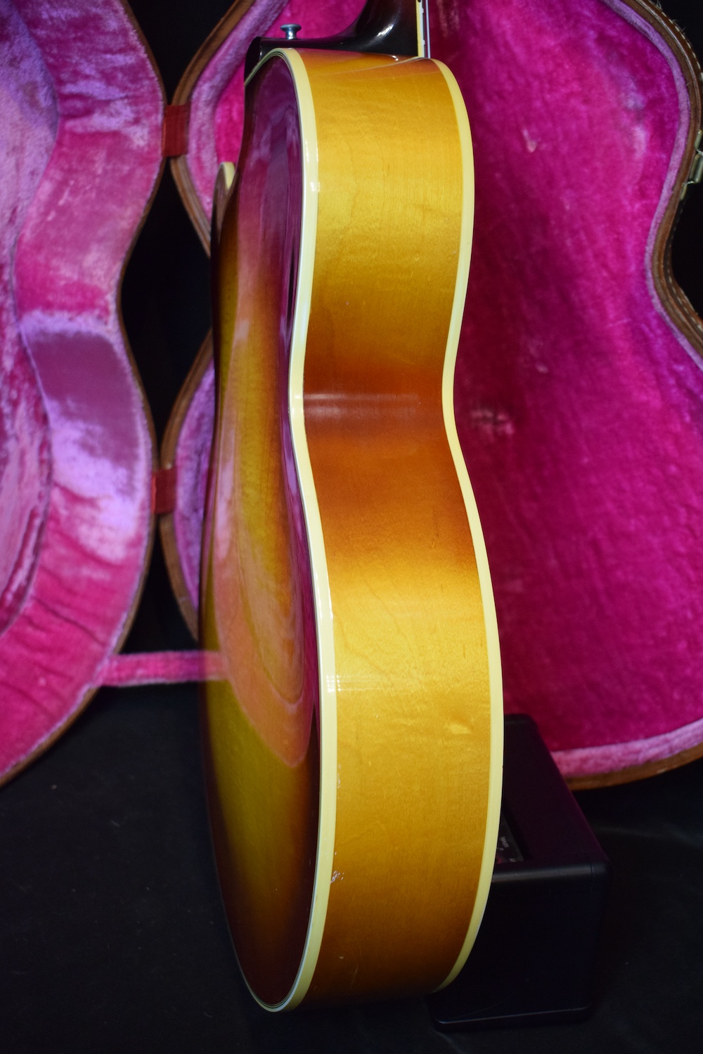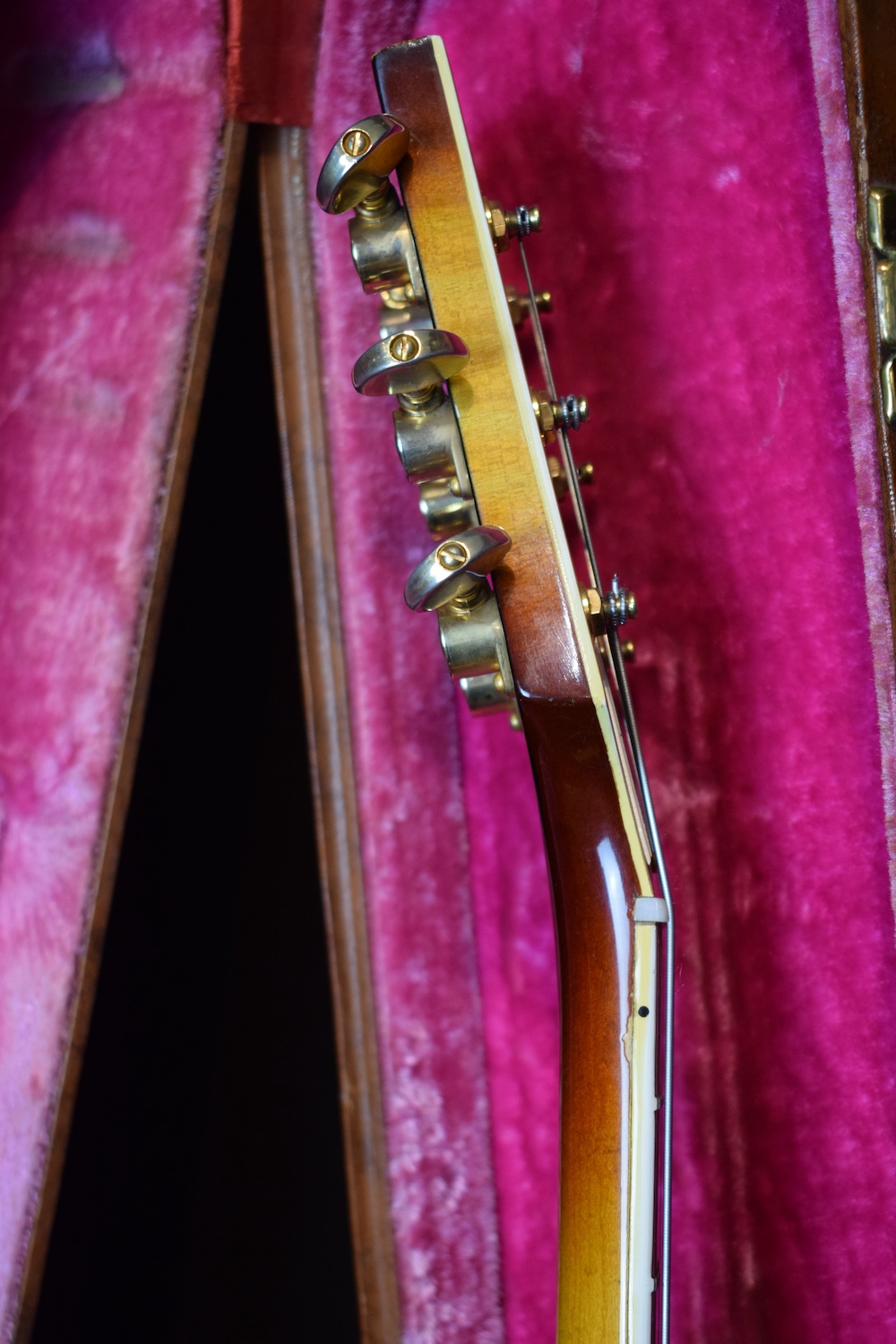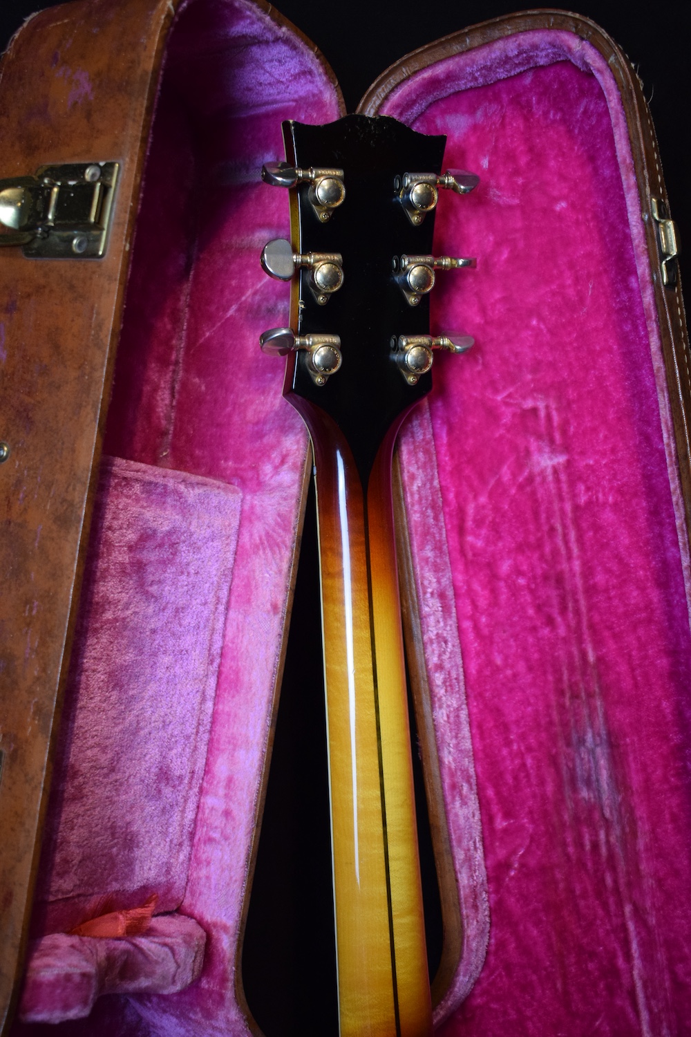 Elle est accompagnée de son étui Lifton d’origine avec tous ses loquets fonctionnels et ses papiers d’époque. Cet instrument est un véritable trésor et un classique très recherché, surtout dans cet état et avec ses micros légendaires intacts.