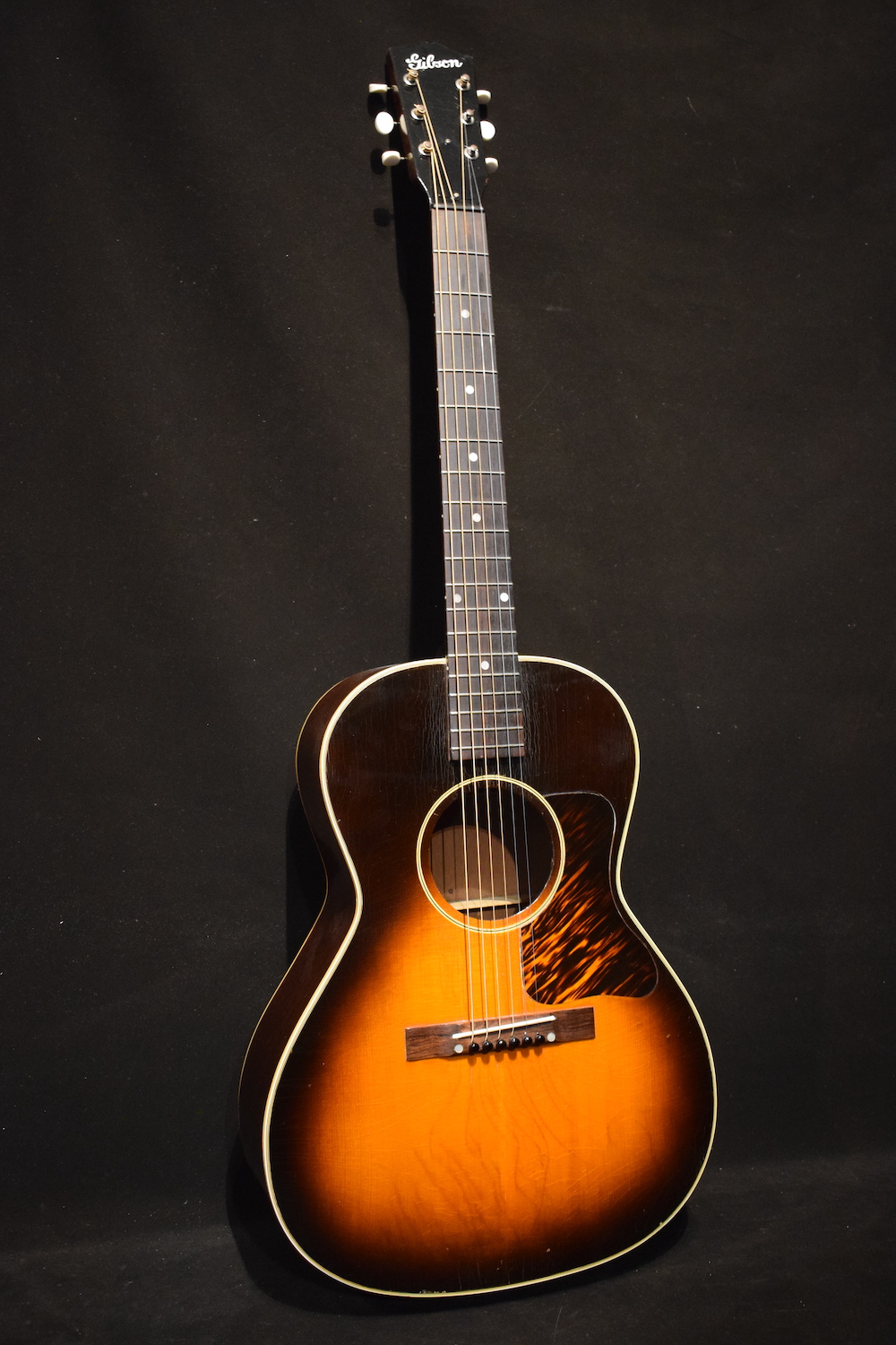 Mon modèle préféré chez Gibson vous le savez pour les plus fidèles d’entre vous. Cet exemplaire est en état remarquable. Le sunburst de la table est sublime. Un overspray sur le fond et les éclisses mais le vernis est original et sans retouche sur la table. Pas de crack ou réparation. Un manche bien rond et très charnu, fort agréable à jouer. Très différent des manches 30s, qui peuvent eux-mêmes grandement varier…Un son rond et très dynamique. Elle a bénéficié d’un neck reset et est donc parfaitement jouable. La touche et les frettes sont en excellent état. En étui rigide Gibson moderne. Ne la ratez pas.