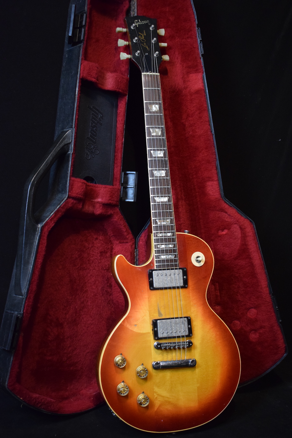 Rares, très rares sont les occasions de vous proposer une Gibson vintage gauchère. Il me semble que ce n’est que la 3ème fois en 15 ans. Cette Deluxe a été convertie en Standard avec des micros Gibson appelés dirty fingers de 1979, le micro manche fait 15,4Kohms et le chevalet 16,4Kohms !! Amateurs de grosses distos c’est pour vous.