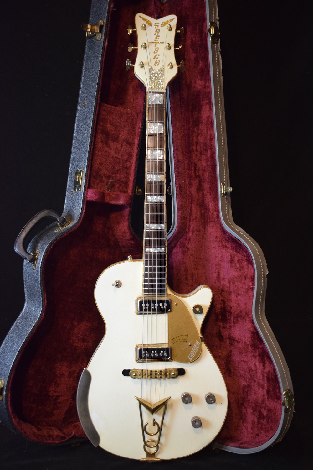 Les White Penguin datant des années 50 et 60 sont probablement les guitares solidbody les plus recherchées, avec un production totale estimée à moins d’une cinquantaine d’instruments en tout et pour tout. ( cf Ball’s manual of Gretsch Guitars, Schiffer Publishing, 2014). D’autres sources affirment une quinzaine. Sans que l’on puisse trancher entre les deux nombres, il est certain qu’elles sont excessivement rare et recherchées. Le modèle ici présenté est une conversion à partir d’une Duo Jet des années 50, ce qui reste le meilleur moyen de s’approcher de l’original sans débourser 200 000 euros (sic).