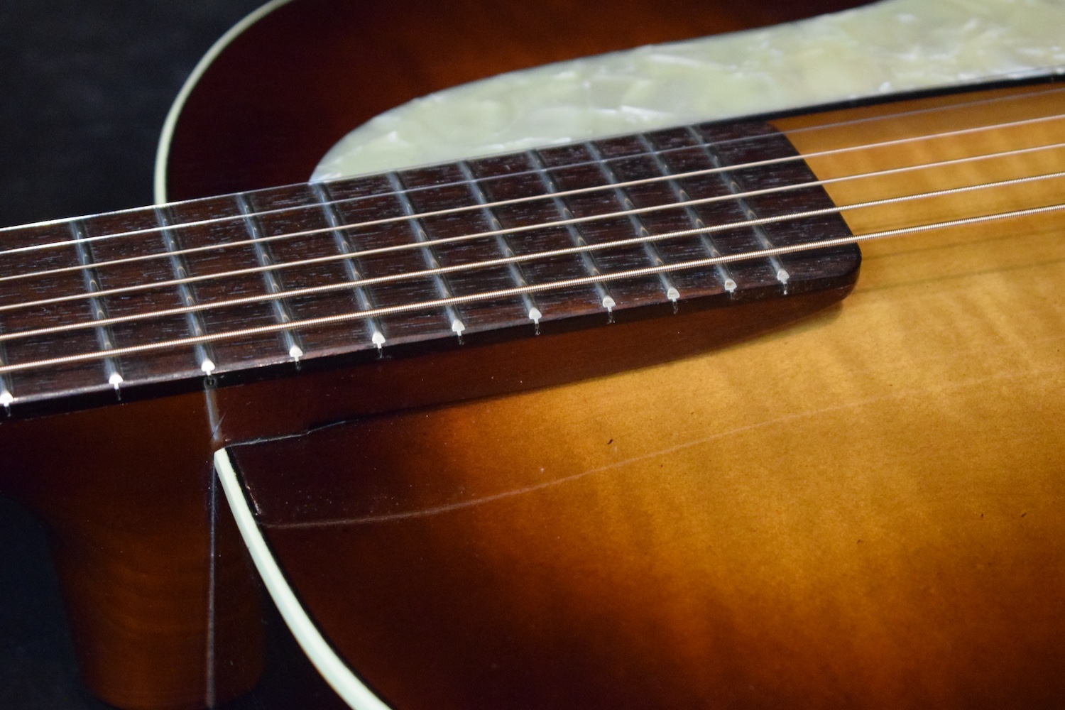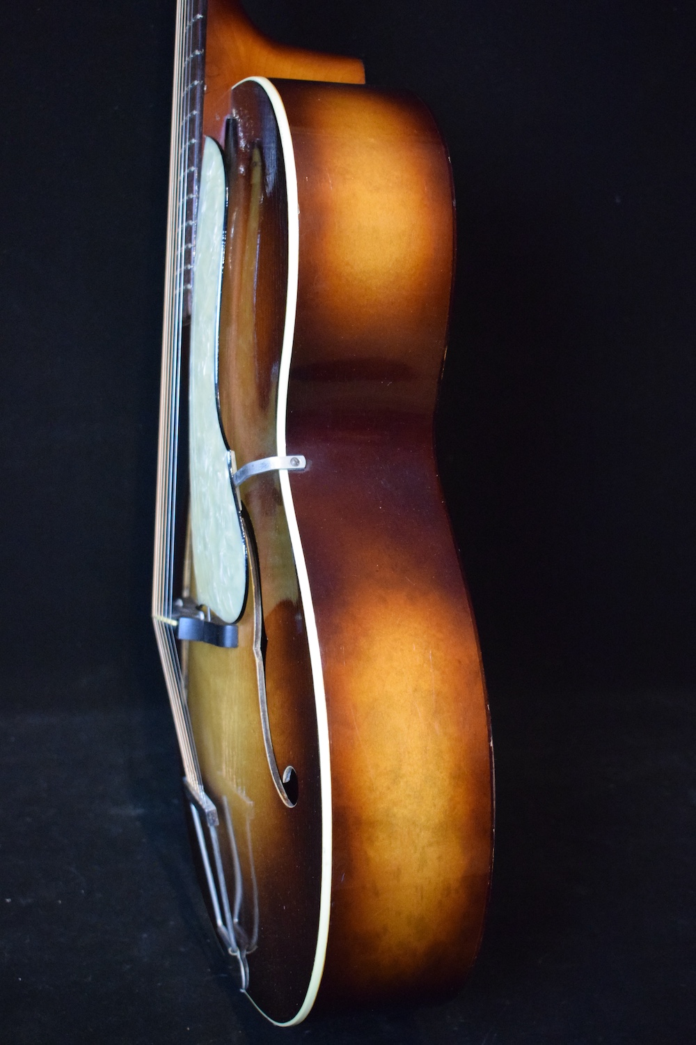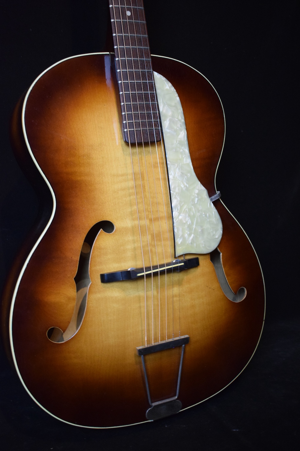 Déjà par les essences, regardez le dos, mais aussi par le son et la jouabilité. Elle possède un très joli timbre jazz et joue franchement très bien avec une action basse et un angle idéal. Je ne suis pas en train de vous dire que c’est aussi bien qu’une L5 mais pour le prix c’est vraiment bien.
