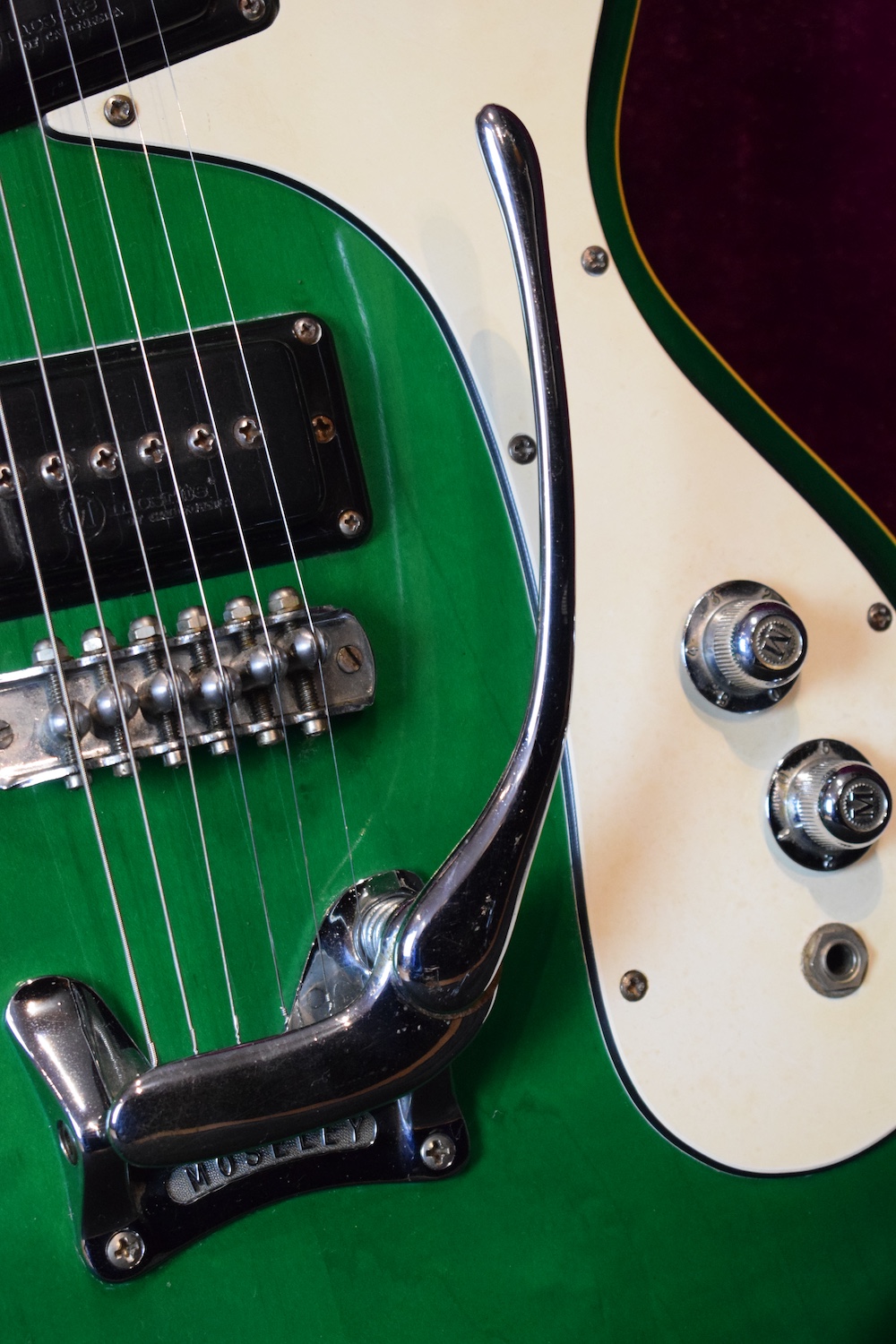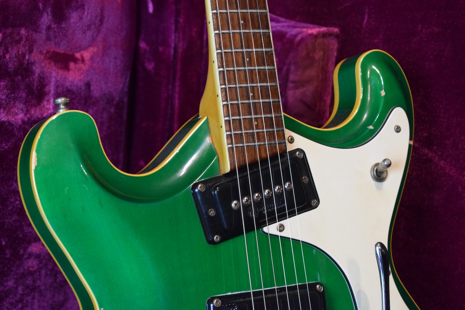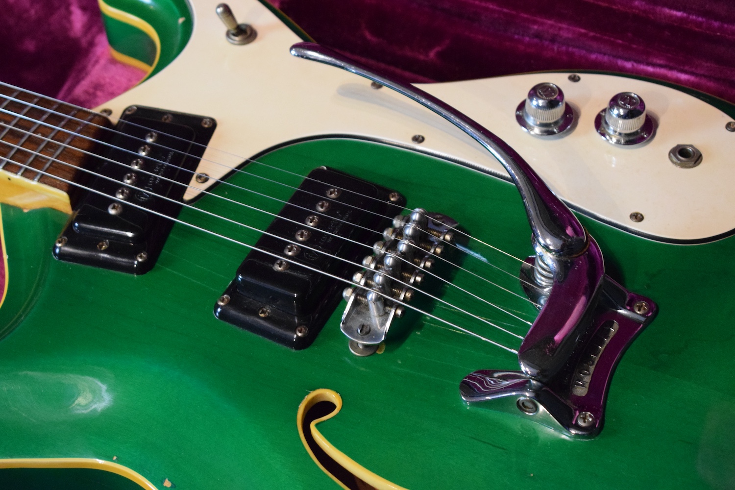 J’ai beaucoup cherché et je n’ai trouvé aucune autre occurrence pour une Mosrite Combo verte. C’est n’est peut-être pas la seule, tout n’est pas sur internet ou dans les livres, mais en tous cas en trouver une autre ne sera pas chose aisée.