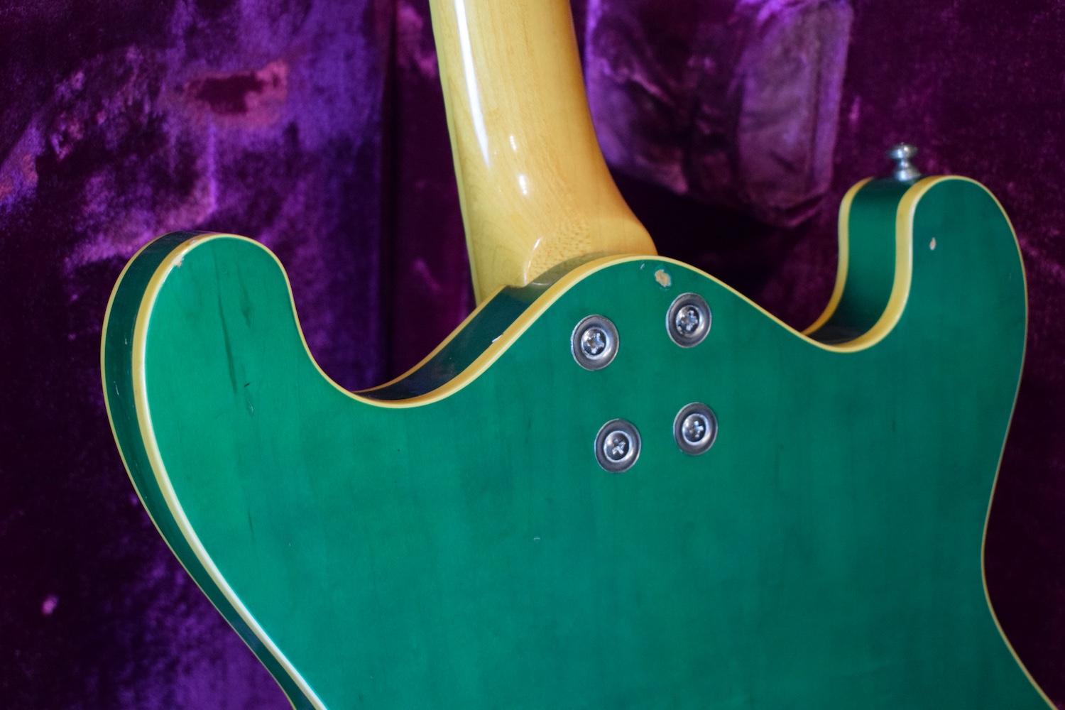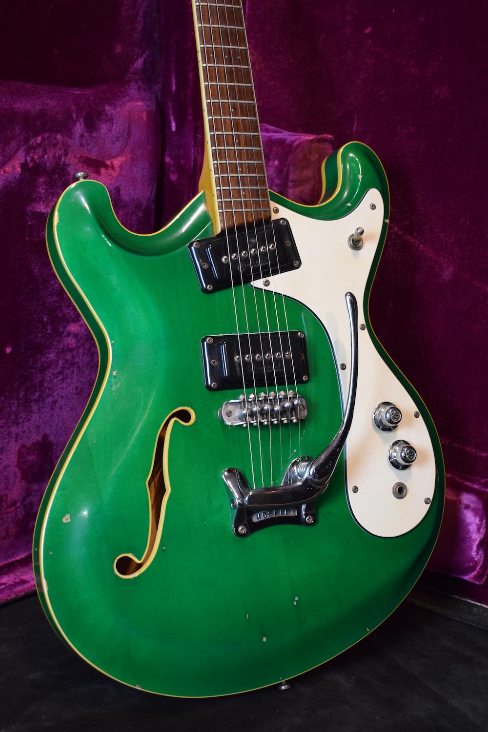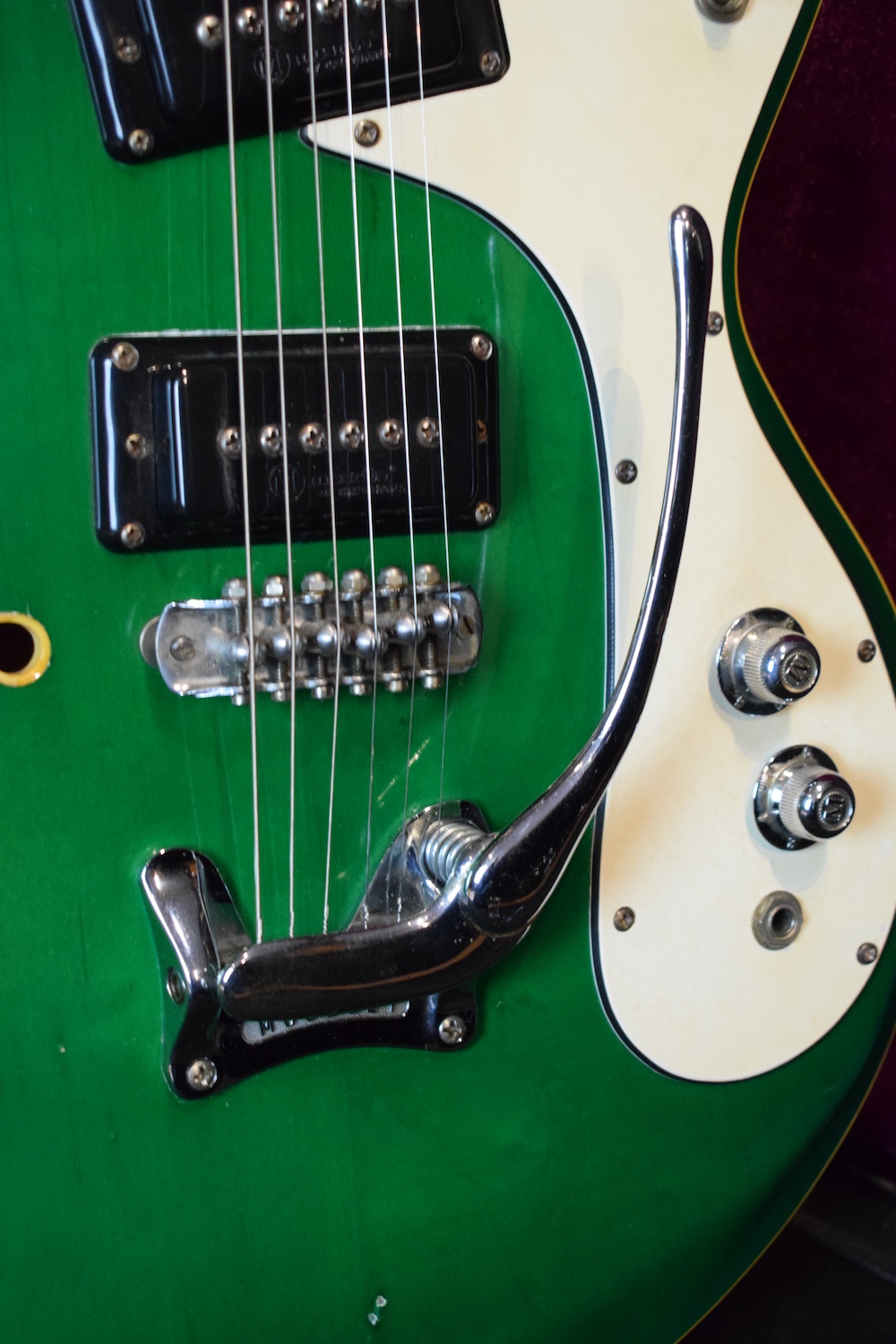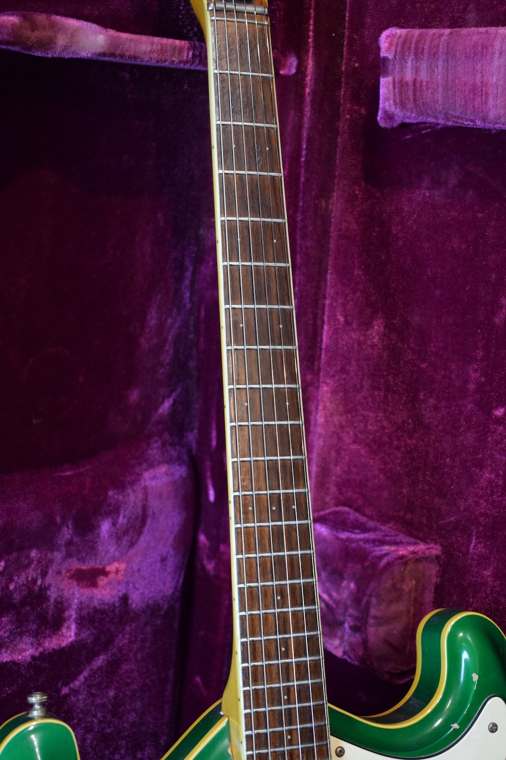 J’ai beaucoup cherché et je n’ai trouvé aucune autre occurrence pour une Mosrite Combo verte. C’est n’est peut-être pas la seule, tout n’est pas sur internet ou dans les livres, mais en tous cas en trouver une autre ne sera pas chose aisée.