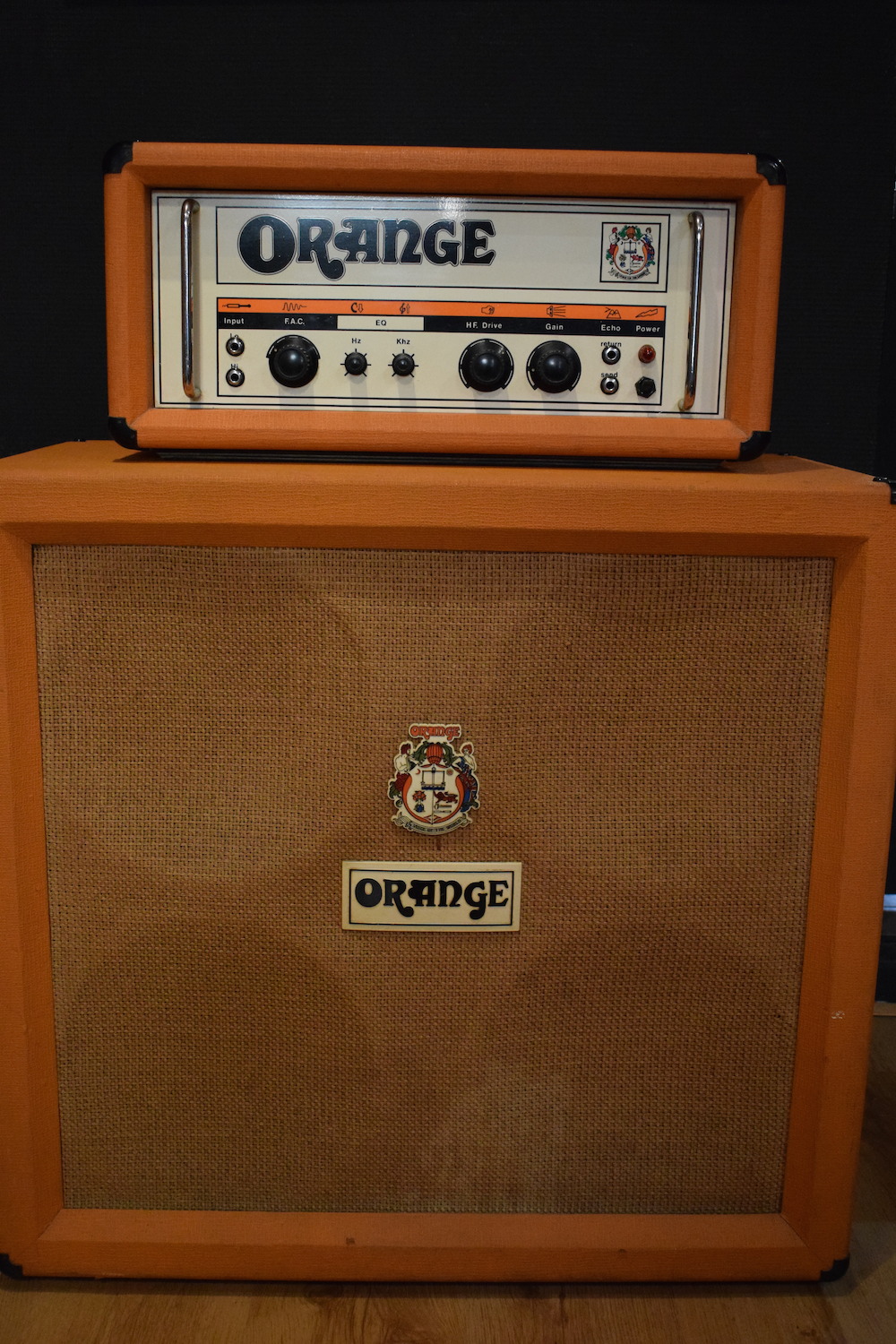 Très bel ampli en excellent état d’origine. Transfos et condos originaux, même les lampes Mullard d’origine sont toujours là et parfaitement fonctionnelles. C’est un ampli très costaud, avec un très gros son, et oui, il fait 120 watts quand même! Made in England of course.