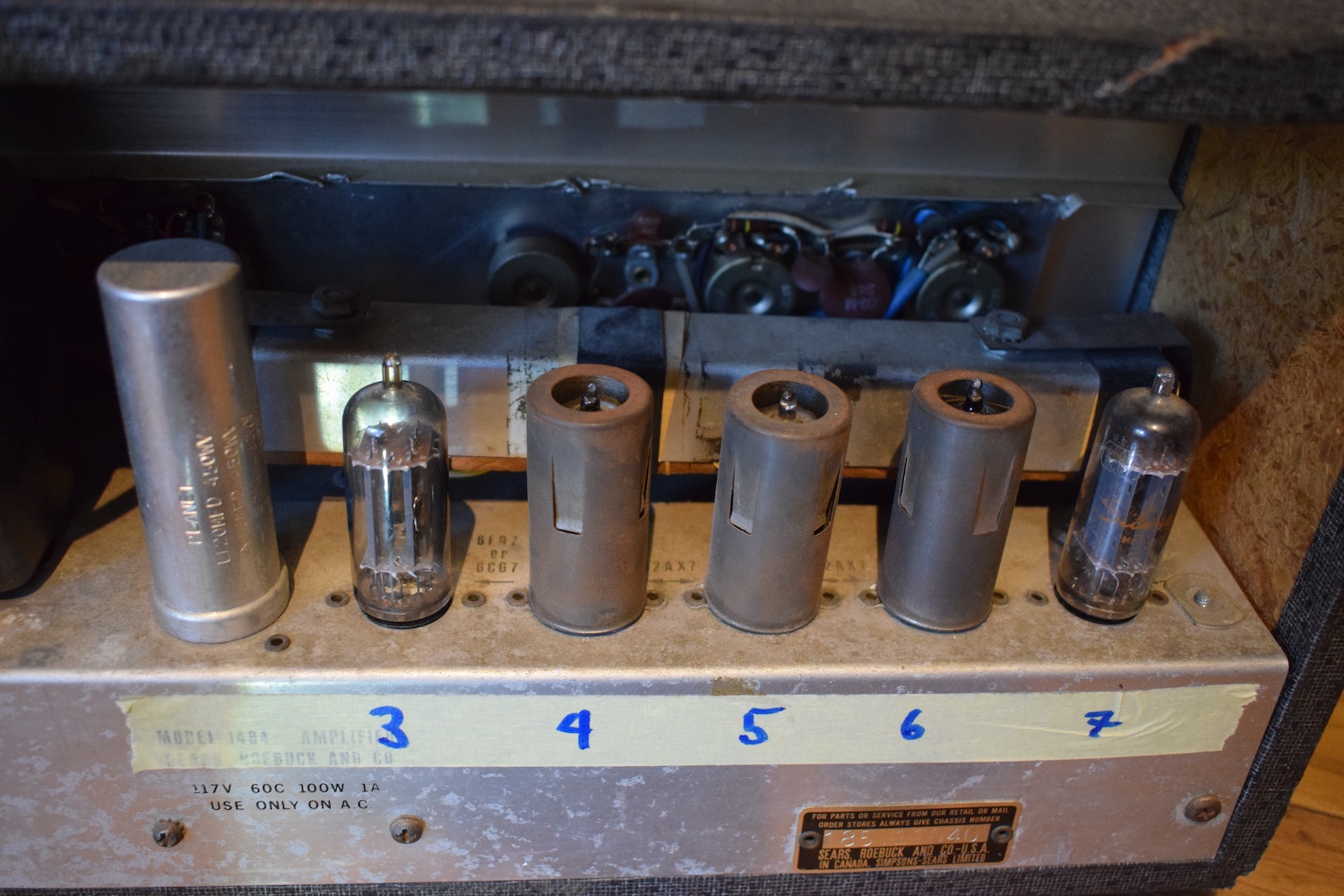 Lampes siglées Silvertone et transfos d’origine. Toujours en 110V.