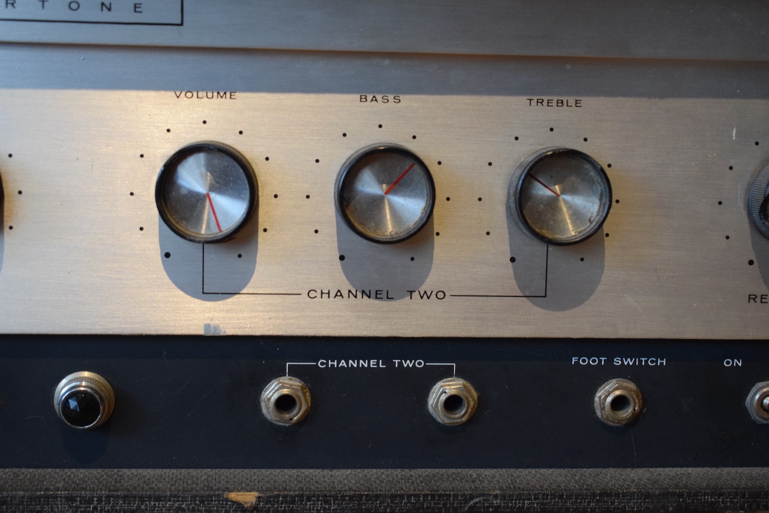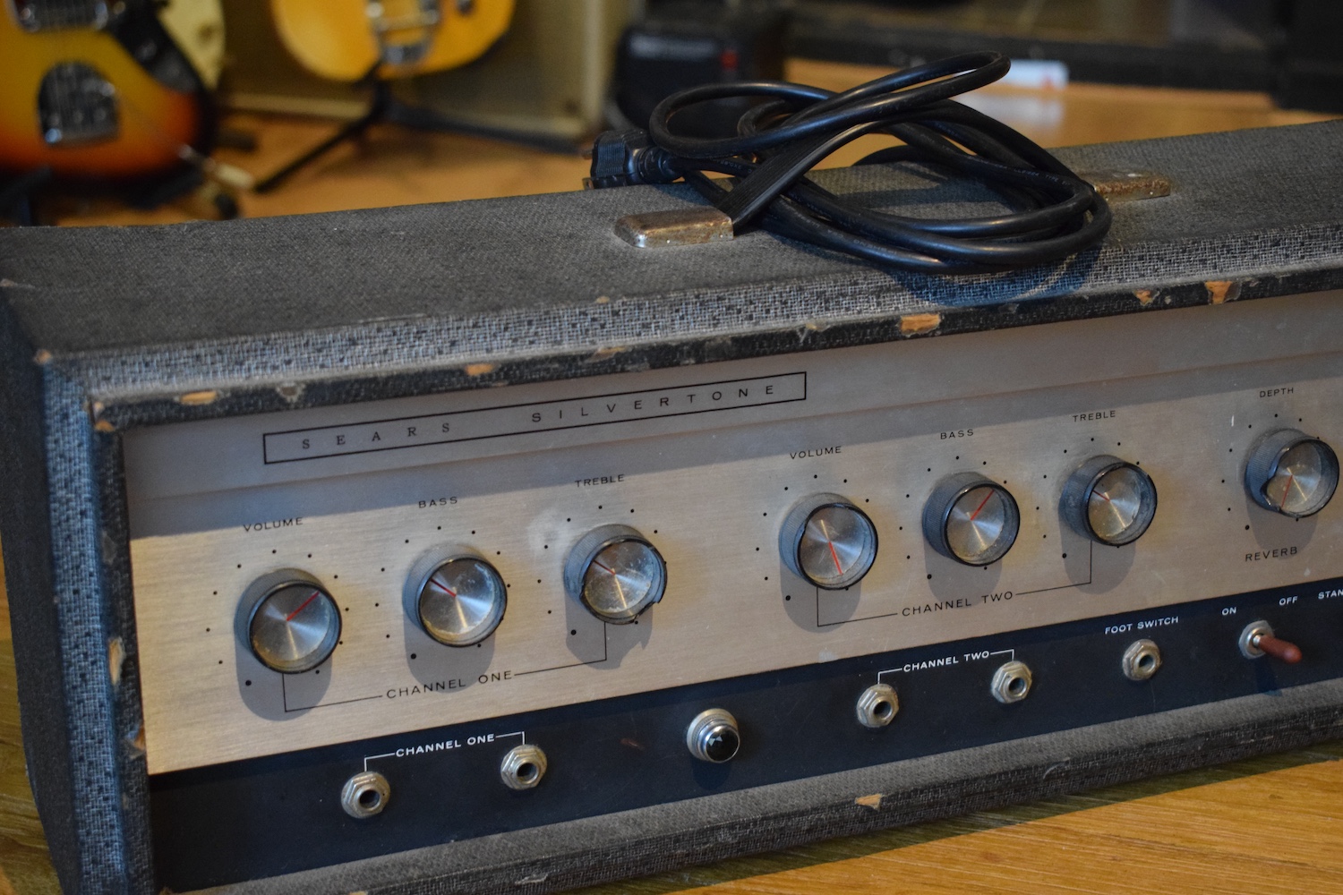 Ampli culte Silvertone 1484 en excellent état de fonctionnement, entièrement d’origine. Le classique Twin Twelve fabriqué par Danelectro pour Sears entre 1963 et 1967, connu pour son grain unique et son overdrive organique.