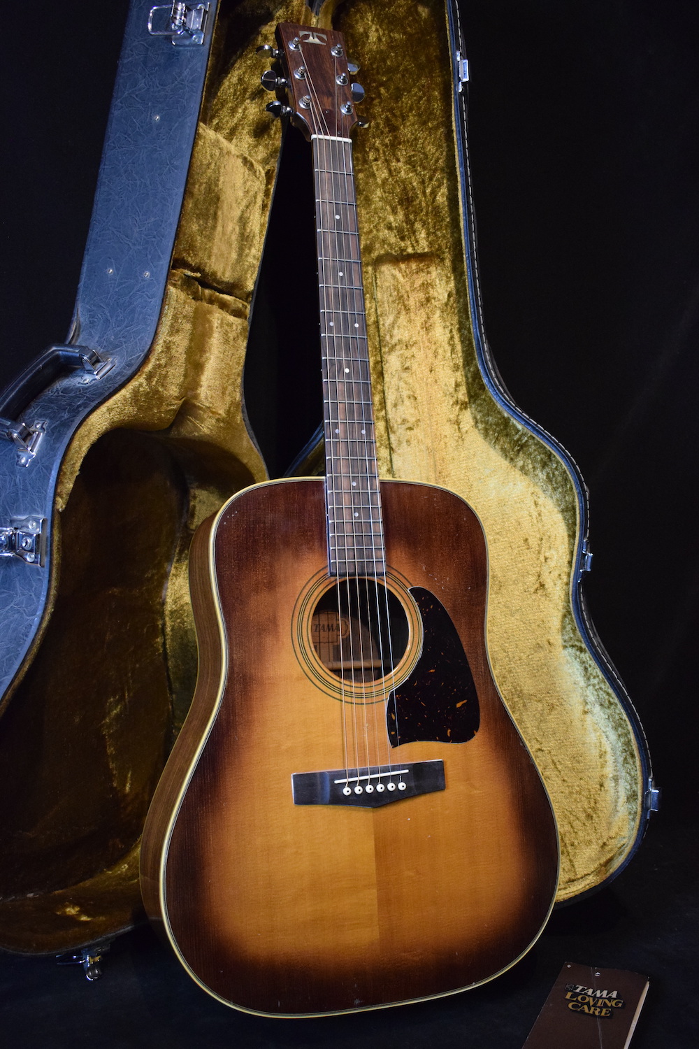 Ce modèle haut de gamme ne fut produit qu’un an, uniquement en 1977, au Japon par Seisakusho à Aichi au Japon. C’était une filiale de la fameuse Hoshino Gakki qui possédait Ibanez notamment. Ce modèle est ce que l’on peut espérer de mieux sur une Dreadnaught de ce genre. Le son est très équilibré avec un forte projection et une belle brillance qui n’a rien à envier aux Martin franchement. La table est en épicéa, le fond et les éclisses ainsi que le plaquage de tête sont en palissandre. La touche et le chevalet sont en ébène. Le sunburst est très proche de ce qui se faisait chez Martin à l’époque. Vraiment une guitare remarquable tant par la confort de jeu que par ses qualités acoustiques. C’est un rapport qualité prix imbattable et elle a toute sa place ici aux côtés de belles américaines, nous l’accueillons avec plaisir et avec respect.
